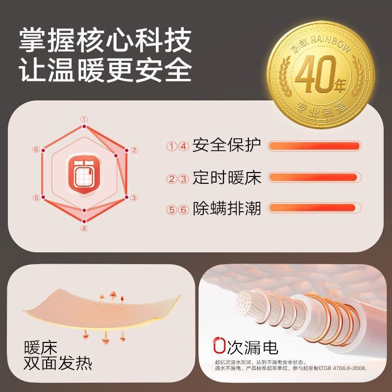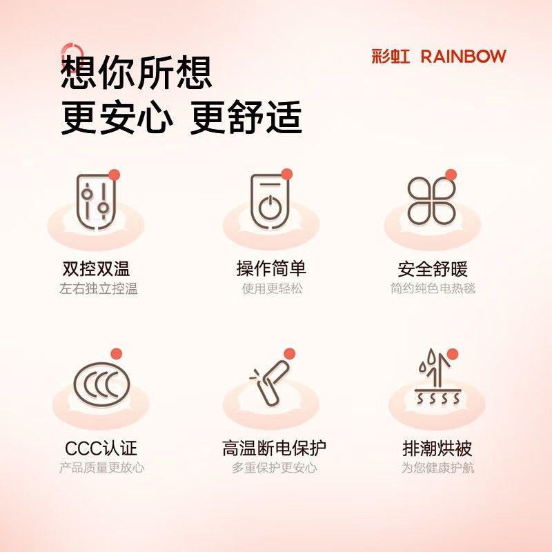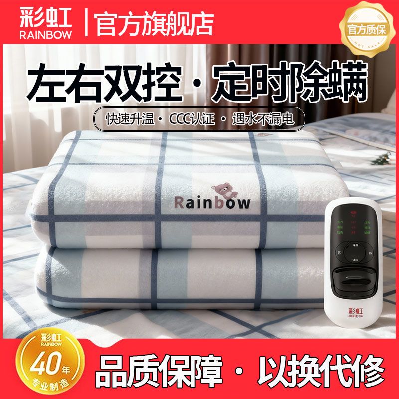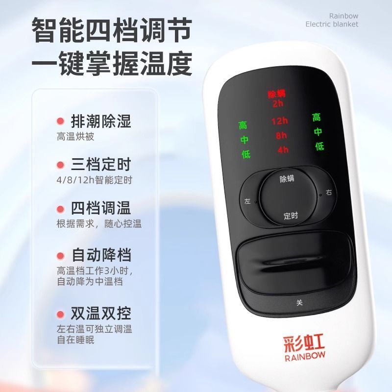 彩虹电热毯单人双人宿舍定时除螨调温遇水不漏电电褥子旗舰店正品