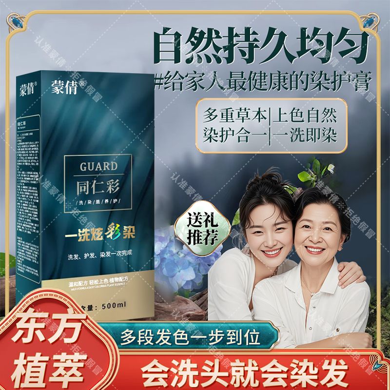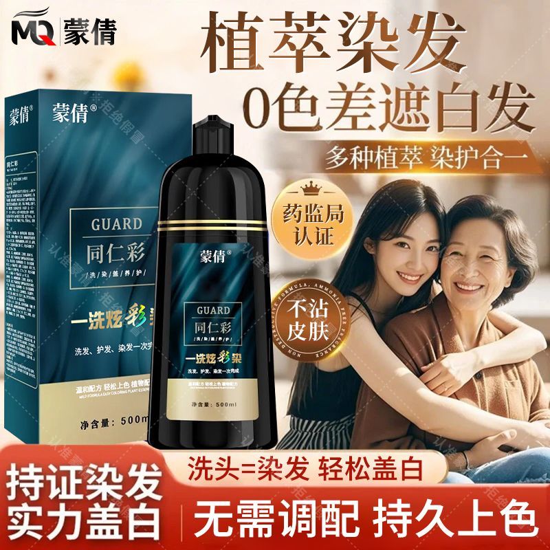 【自然黑】洗发染法蒙倩高端植萃染发膏剂正品不沾黑色泡泡染发剂