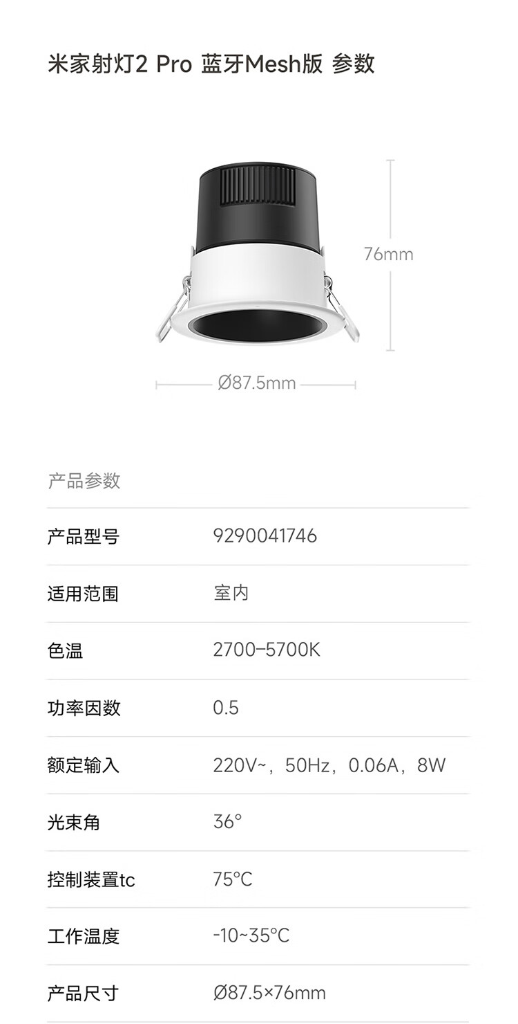 米家(MIJIA)射灯2Pro蓝牙Mesh版小米青山护眼全光谱无极调光灯具