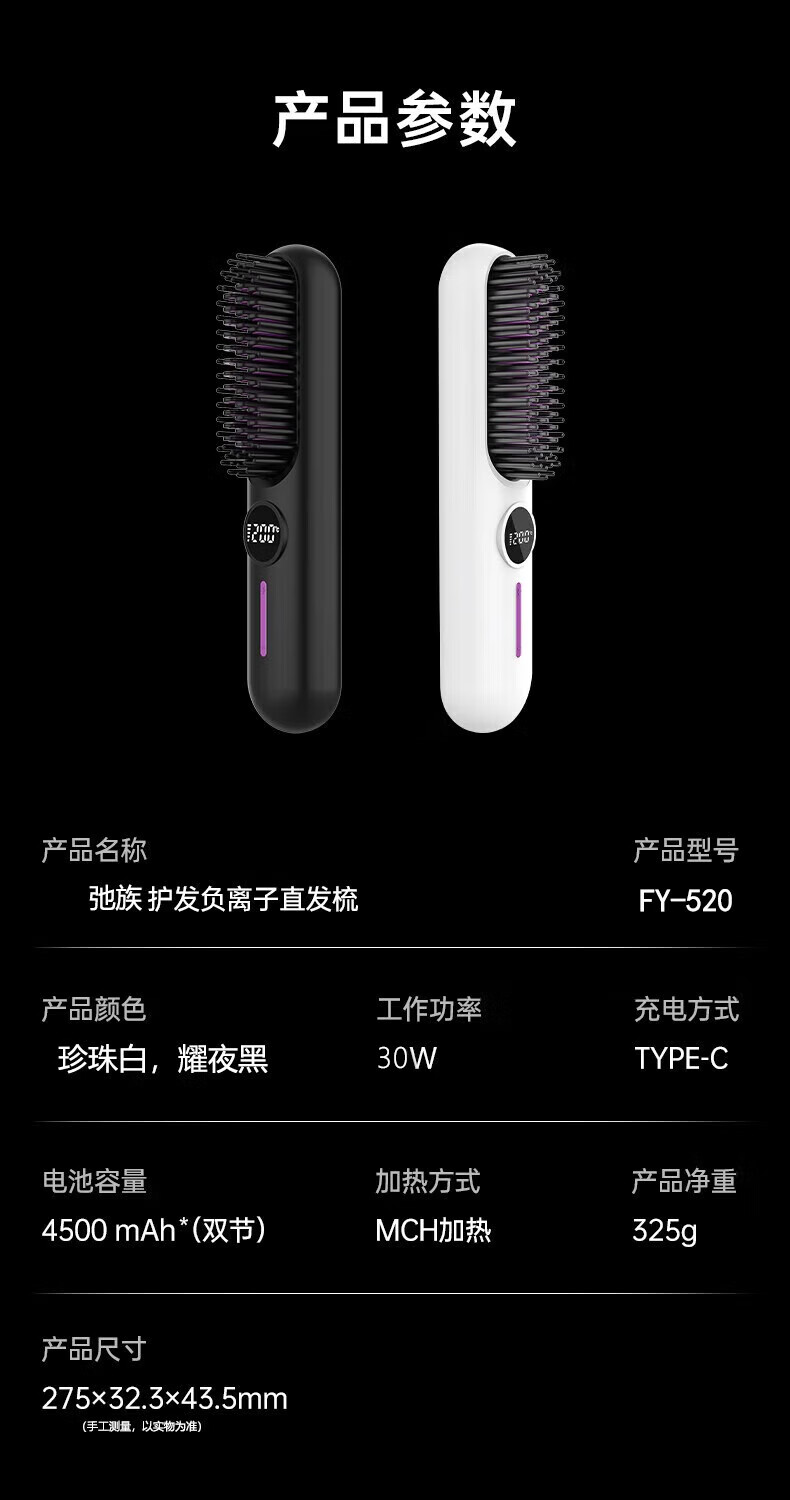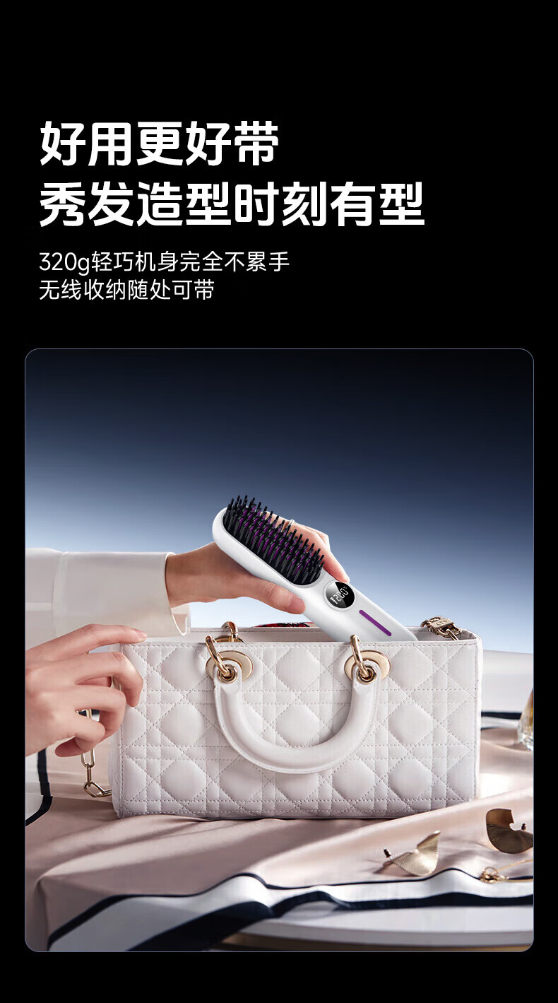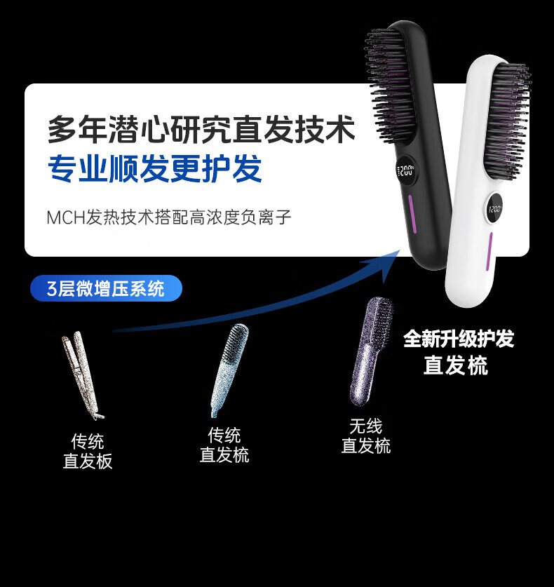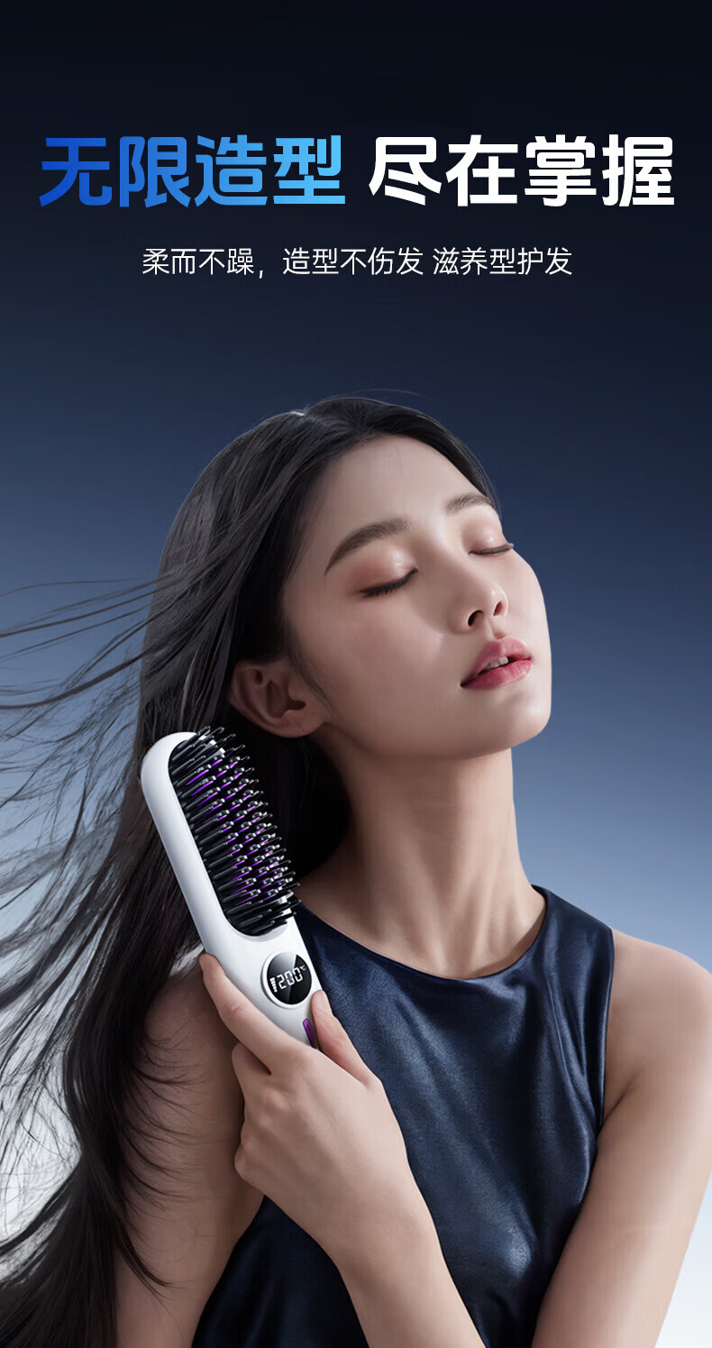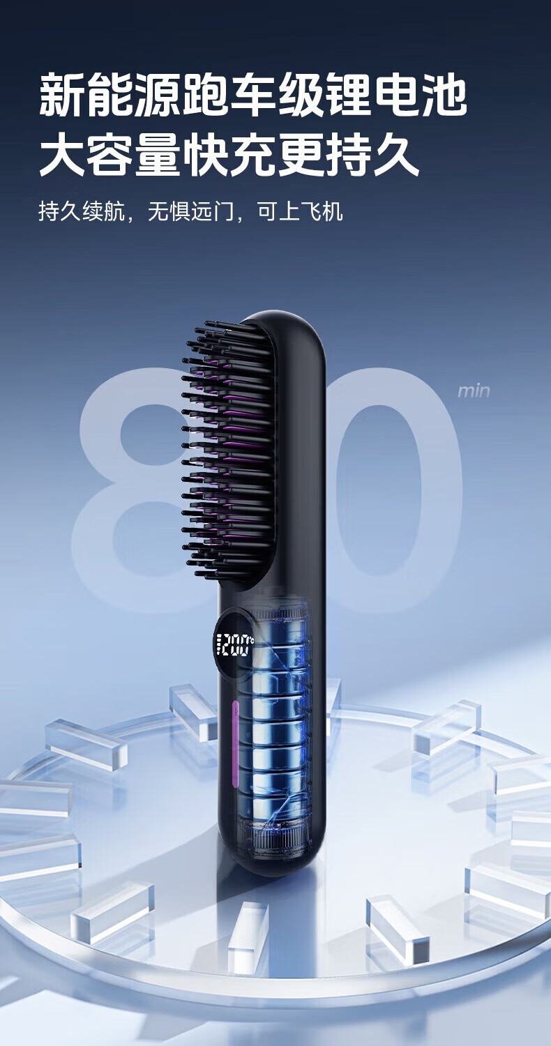 驰族【德国工艺】无线直发梳负离子养发护发不伤发无线便携式直卷两用男女蓬松夹板神器高颅顶造型 【耀夜黑】十亿水润负离子丨生日礼物送女朋友女友老婆 热销100w直发梳十大品牌