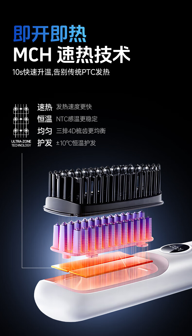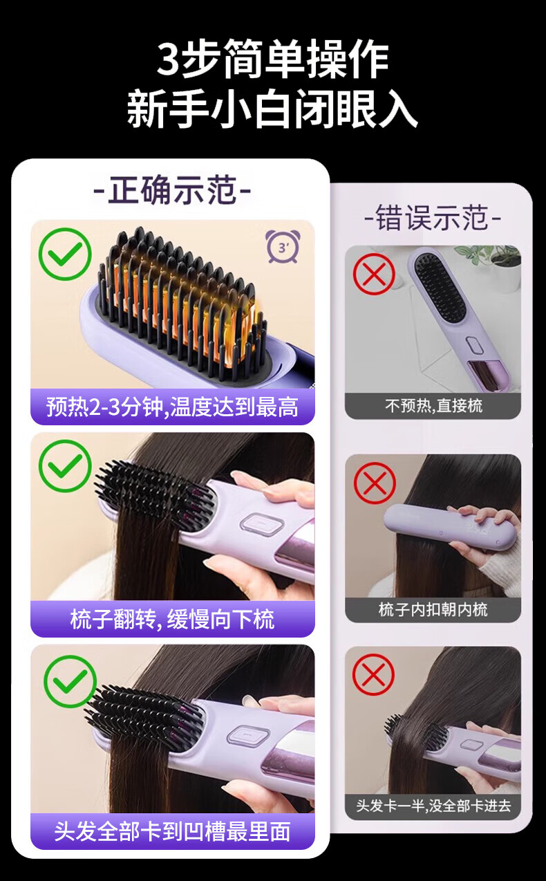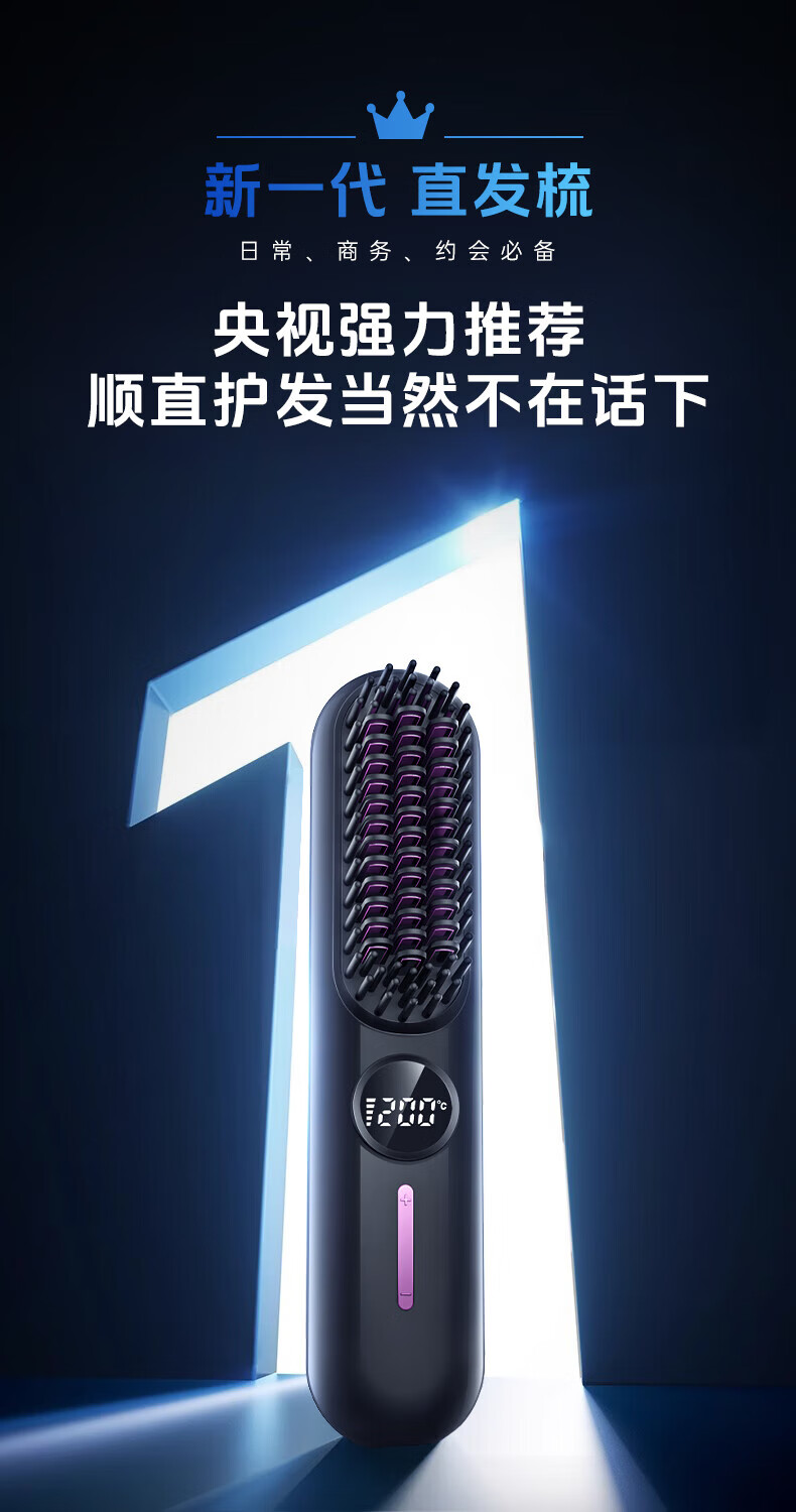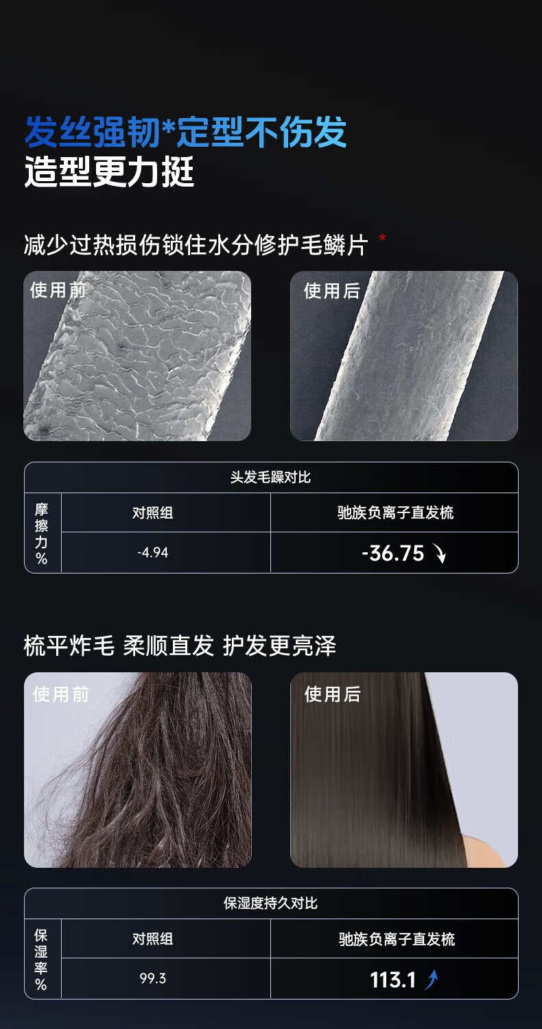 驰族【德国工艺】无线直发梳负离子养发护发不伤发无线便携式直卷两用男女蓬松夹板神器高颅顶造型 【耀夜黑】十亿水润负离子丨生日礼物送女朋友女友老婆 热销100w直发梳十大品牌