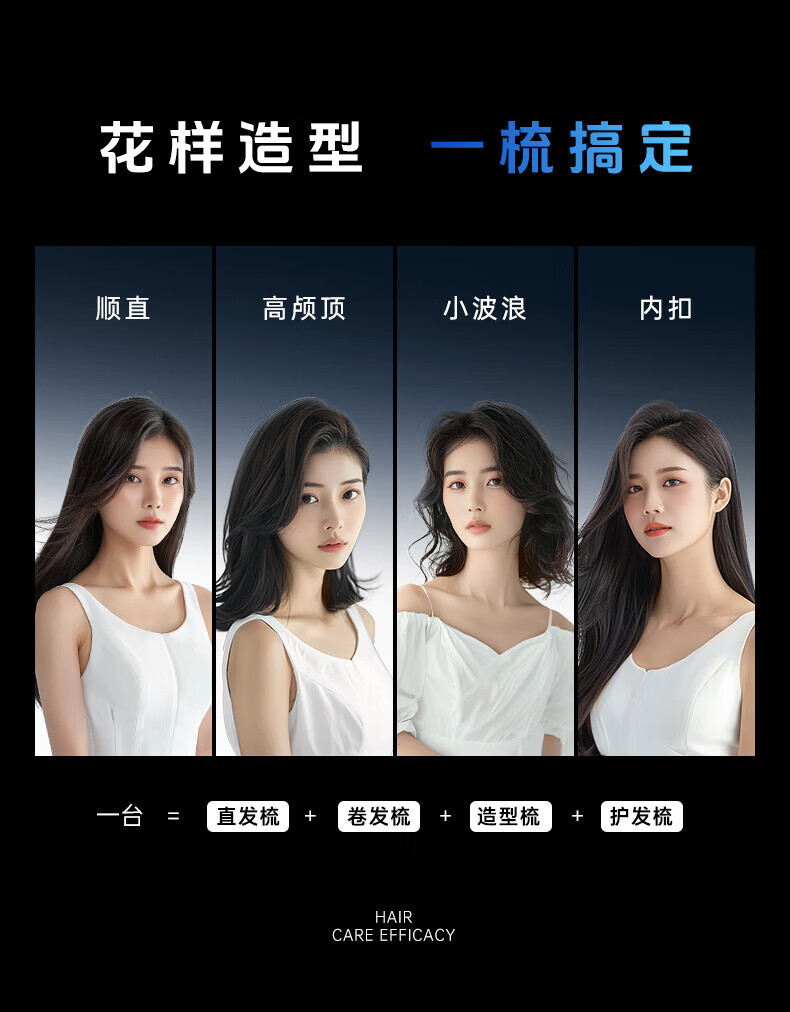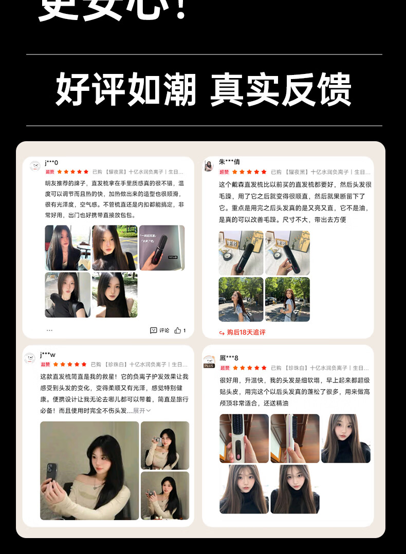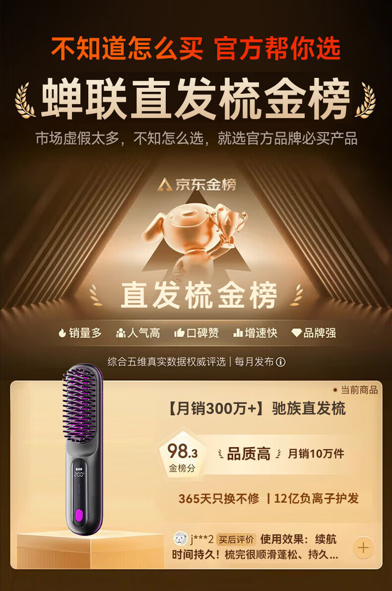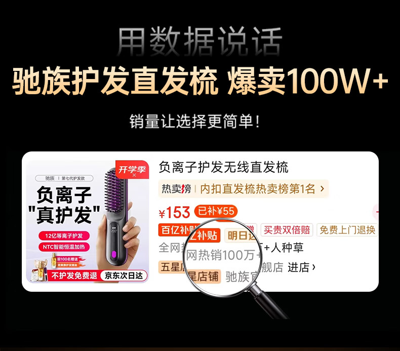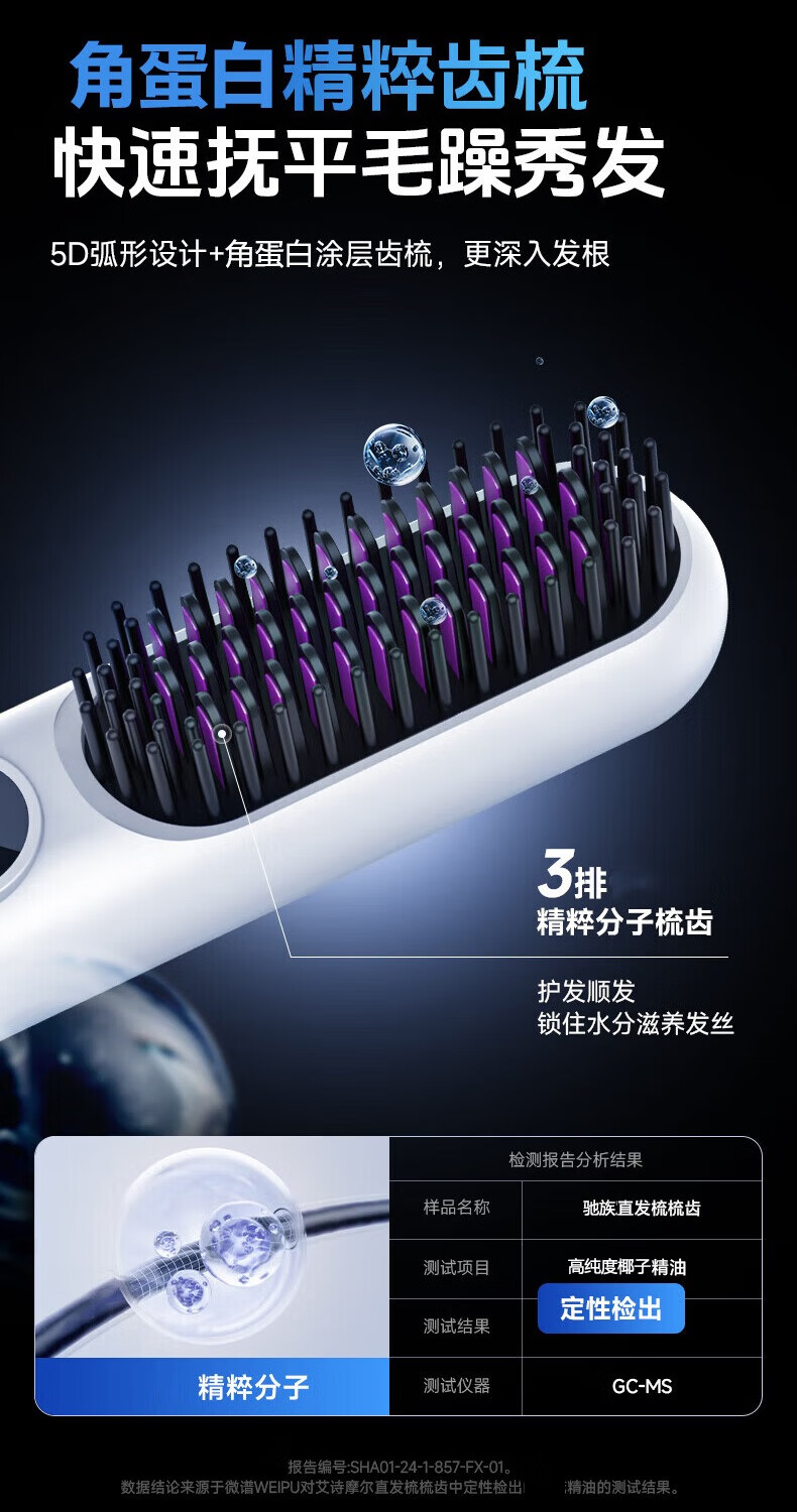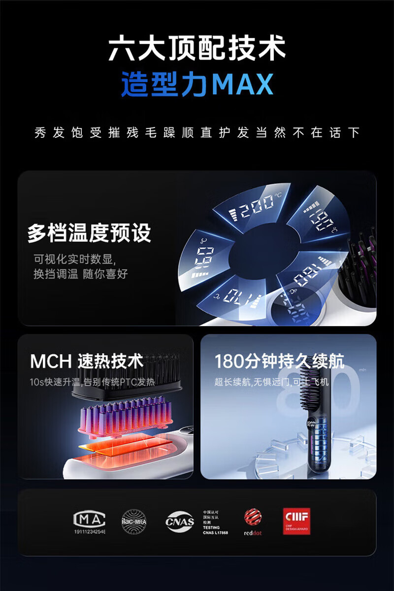 驰族【德国工艺】无线直发梳负离子养发护发不伤发无线便携式直卷两用男女蓬松夹板神器高颅顶造型 【耀夜黑】十亿水润负离子丨生日礼物送女朋友女友老婆 热销100w直发梳十大品牌