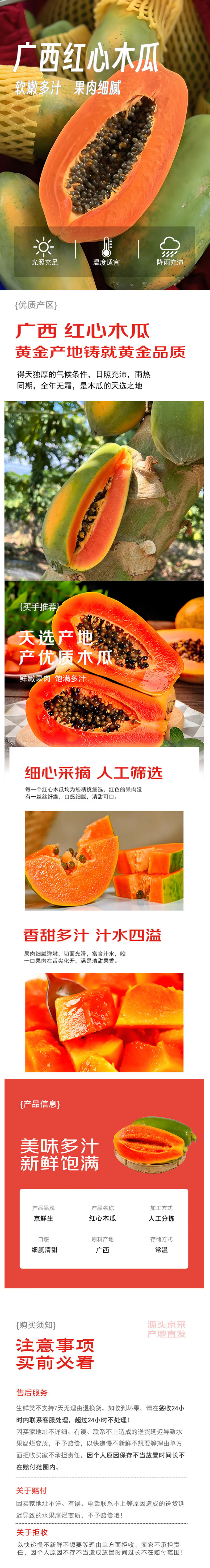 京鲜生广西红心木瓜净重5斤 单果500g+ 生鲜水果 源头直发包邮