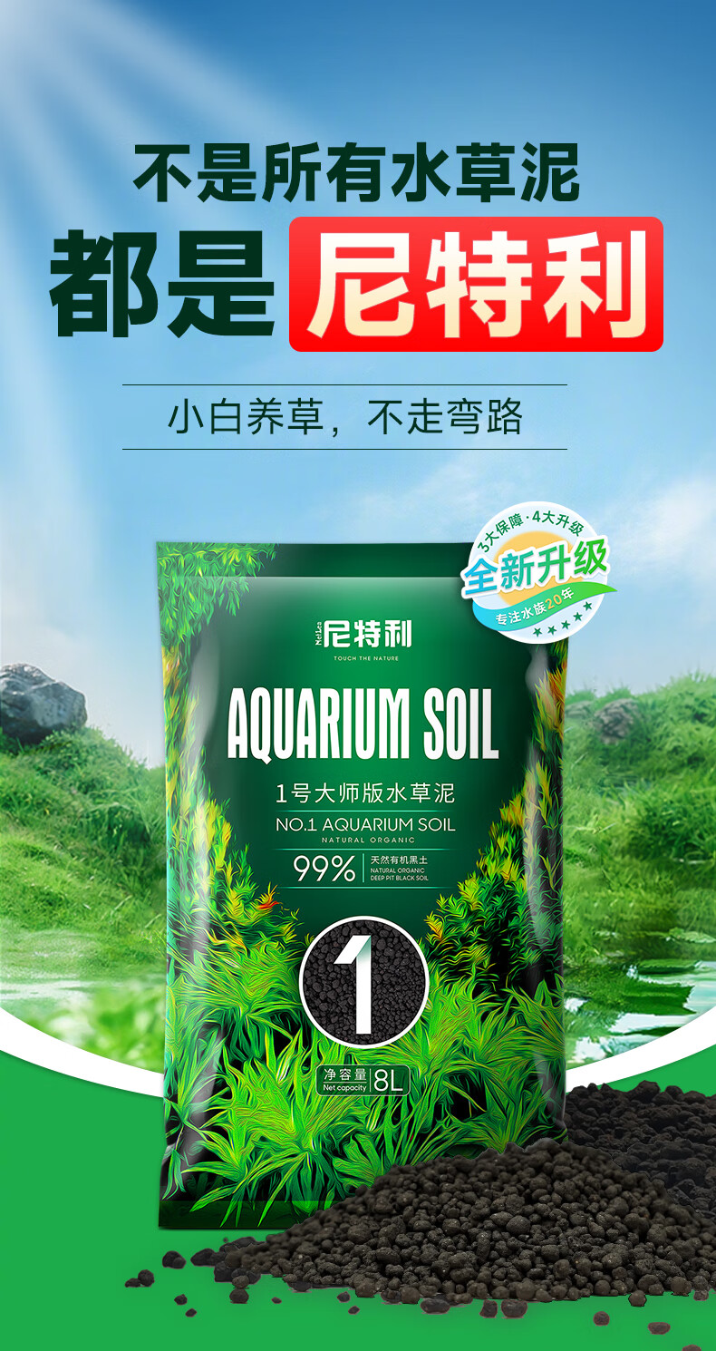 尼特利1号大师水草泥鱼缸专用水藻泥生态草缸底砂营养土2L/袋