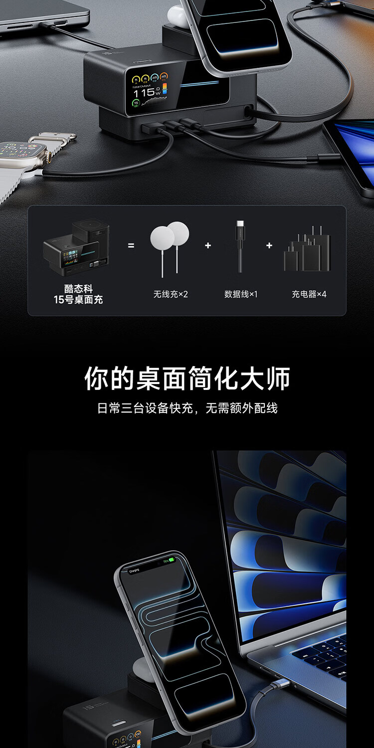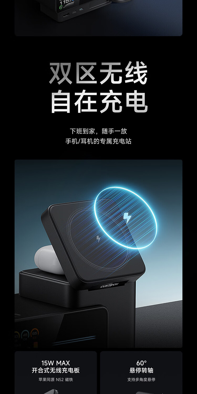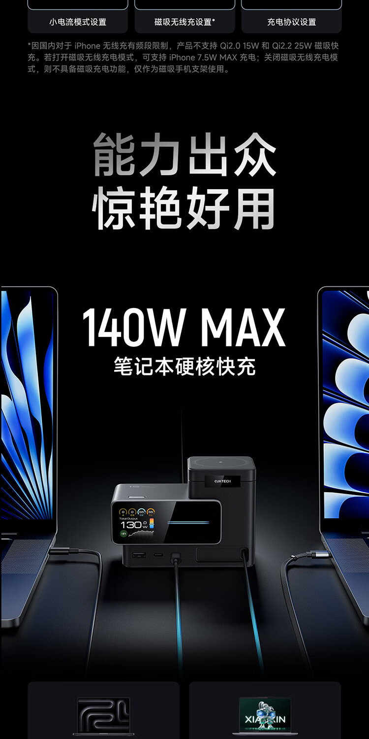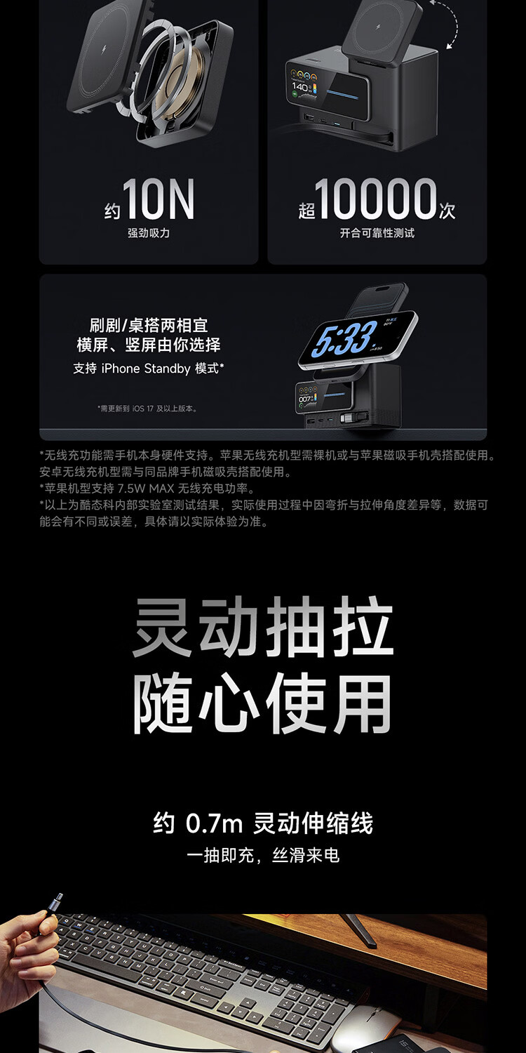 CUKTECH酷态科15号超级电能站6合1桌面充电站140W带伸缩线兼容MagSafe磁吸充电器适用苹果小米手机笔记本