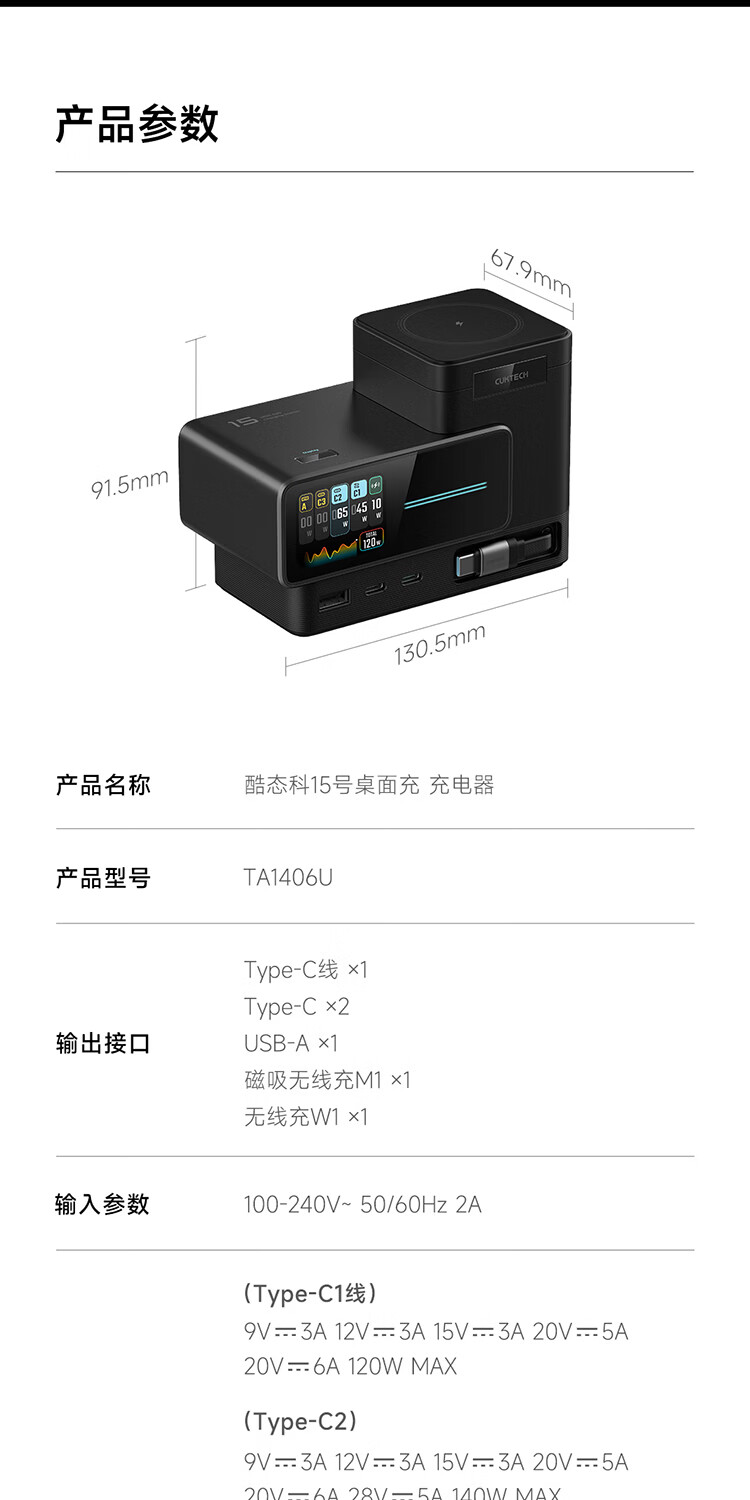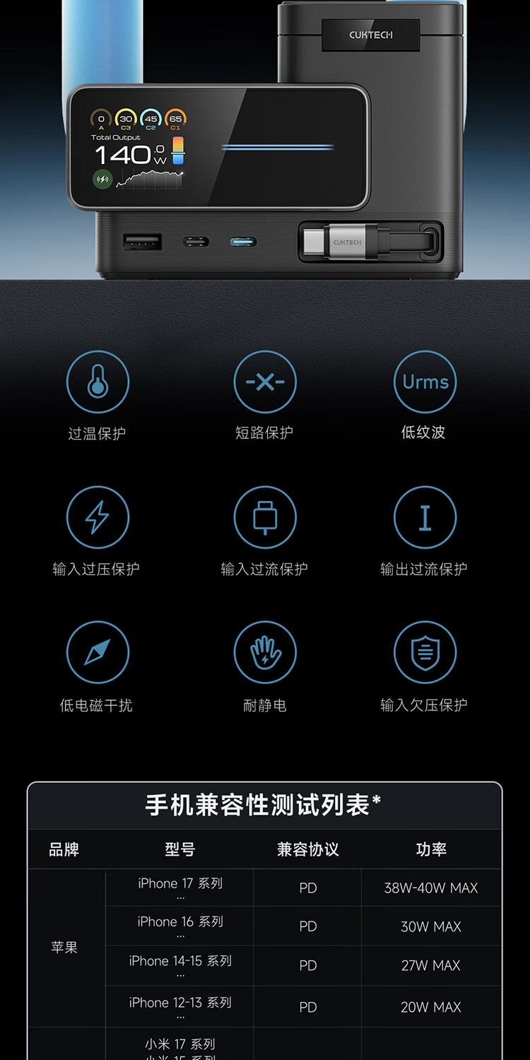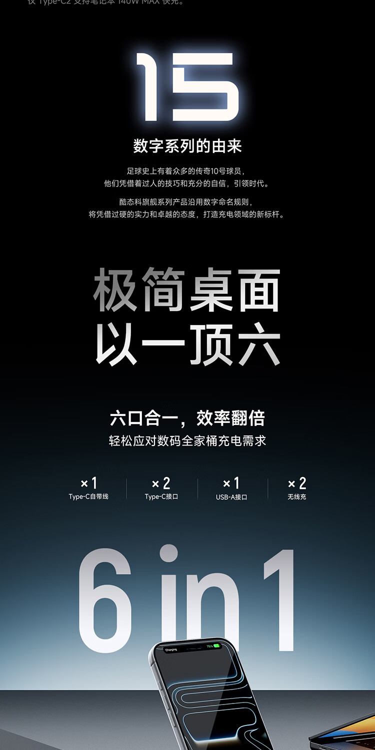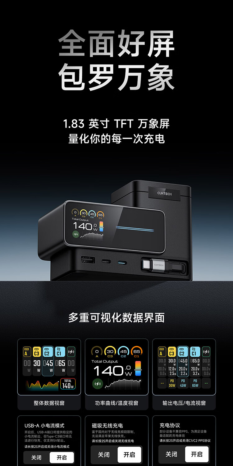 CUKTECH酷态科15号超级电能站6合1桌面充电站140W带伸缩线兼容MagSafe磁吸充电器适用苹果小米手机笔记本