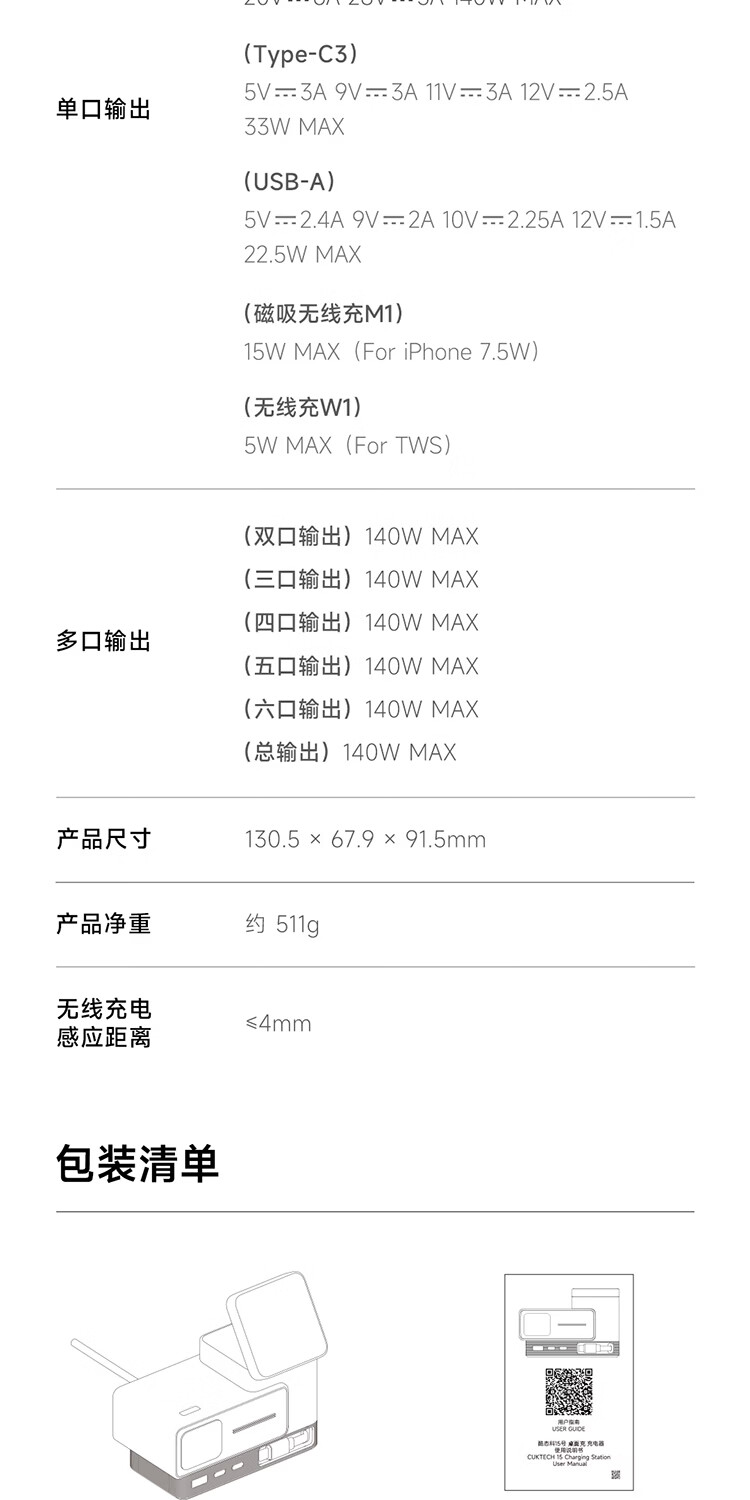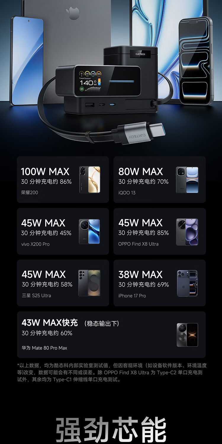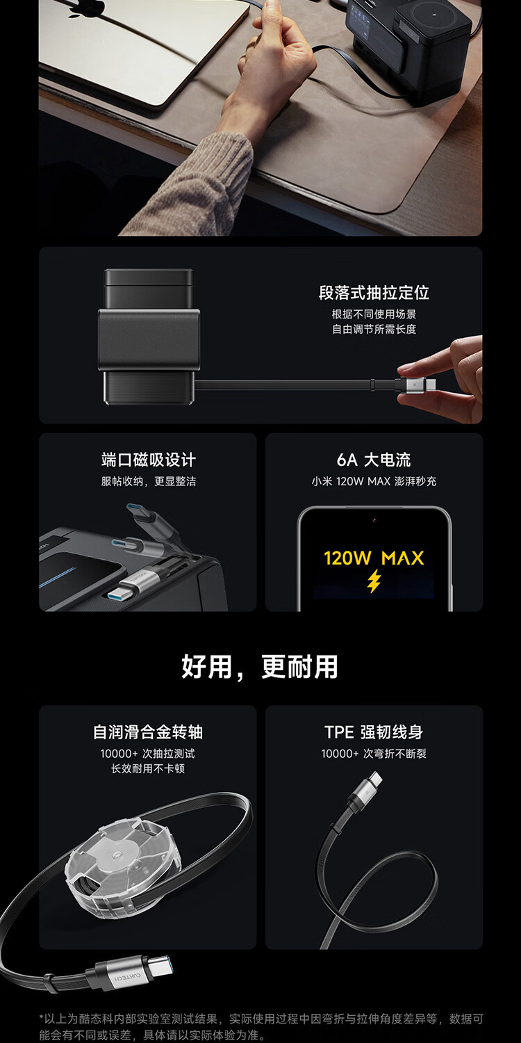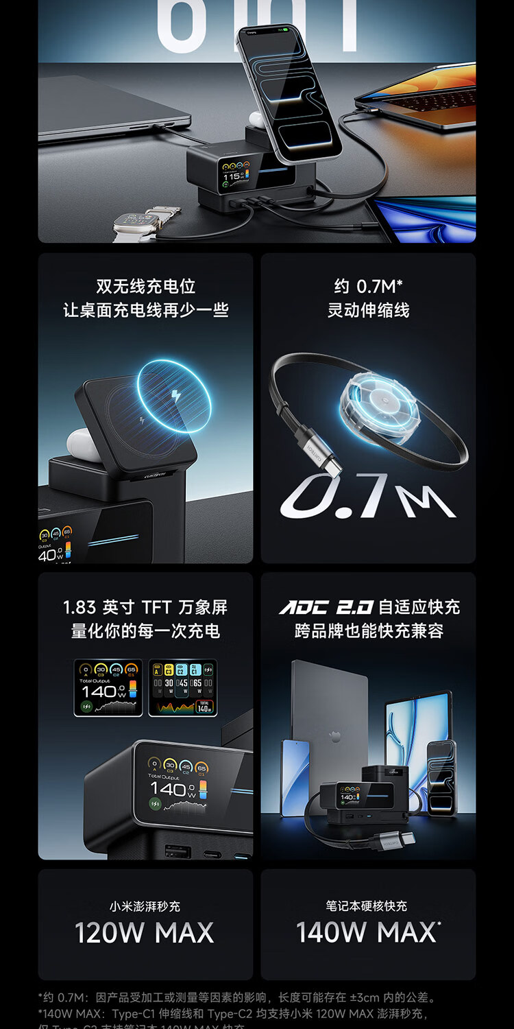 CUKTECH酷态科15号超级电能站6合1桌面充电站140W带伸缩线兼容MagSafe磁吸充电器适用苹果小米手机笔记本