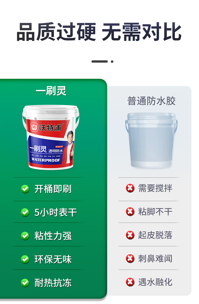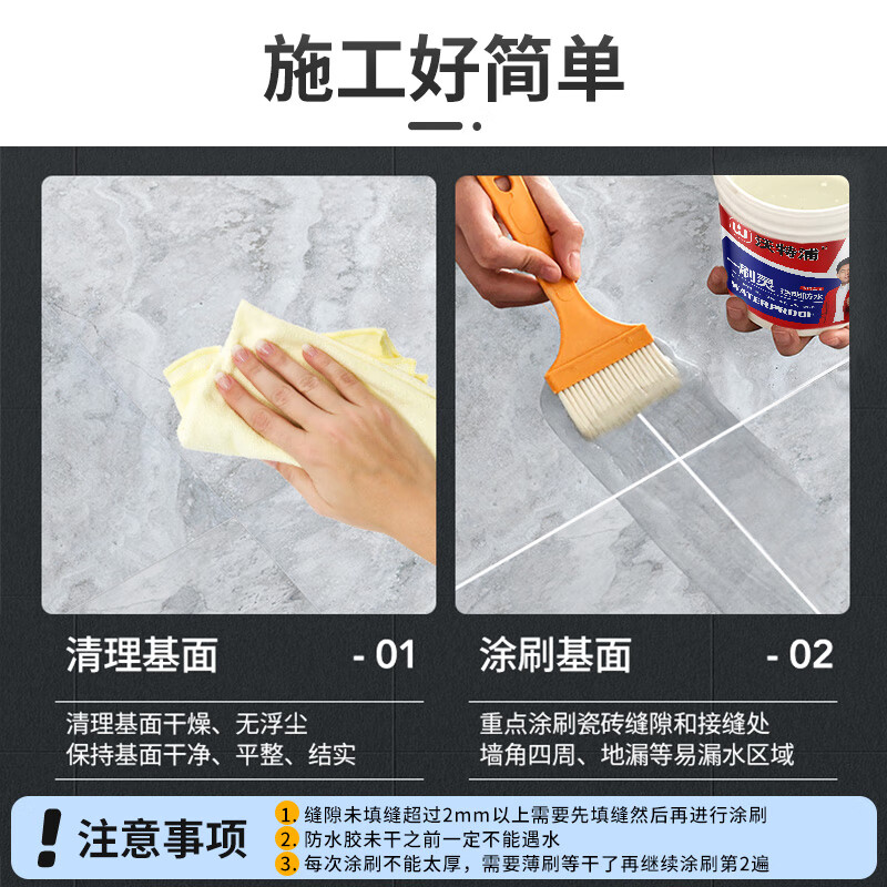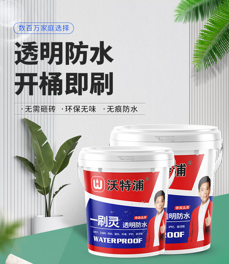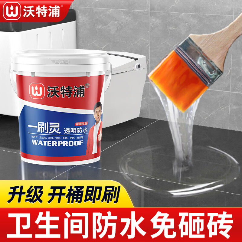 沃特浦卫生间防水涂料透明防水胶免砸砖浴室厕所地面瓷砖漏水补漏王材料 【升级版】2斤 刷2遍约3平