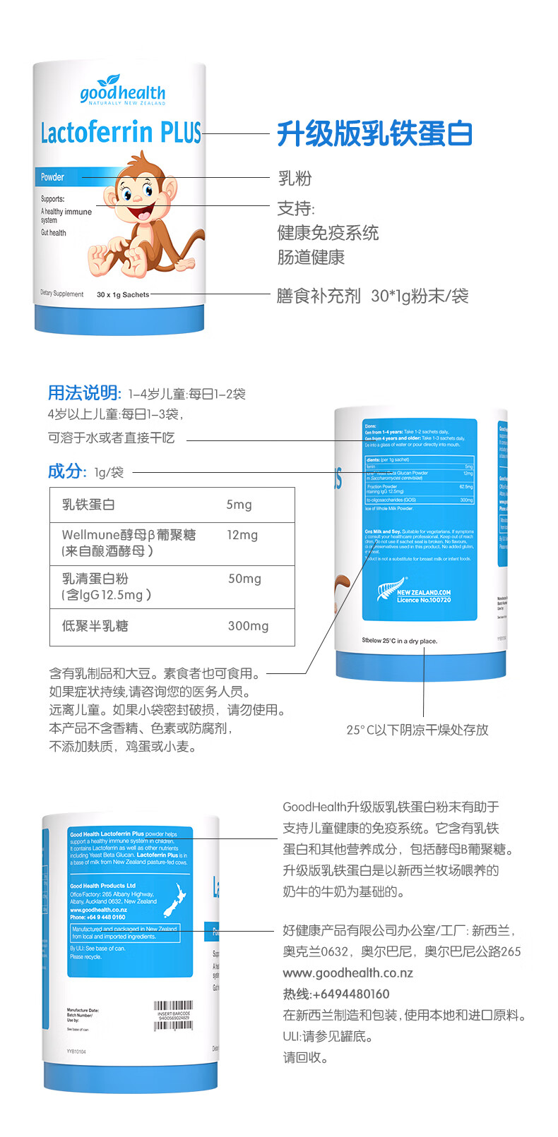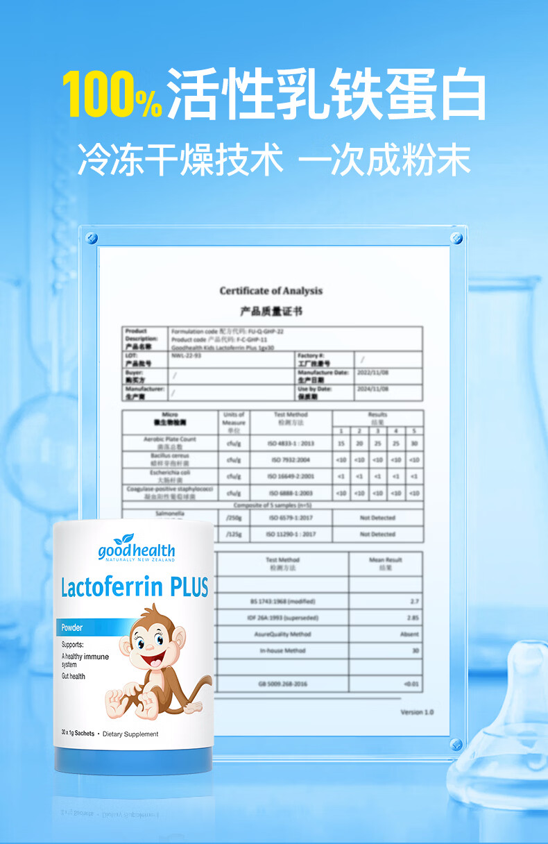 好健康goodhealth老爸抽检小猴子乳铁蛋白粉婴幼儿童增强免疫球蛋白30袋