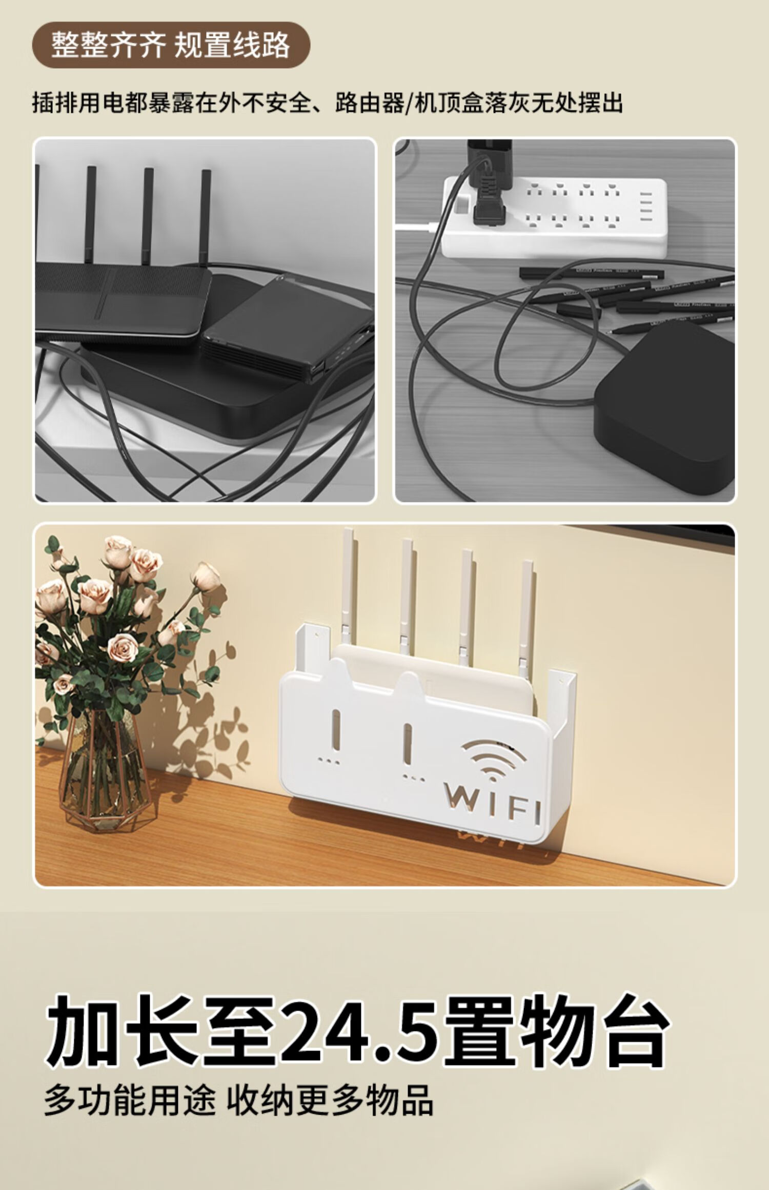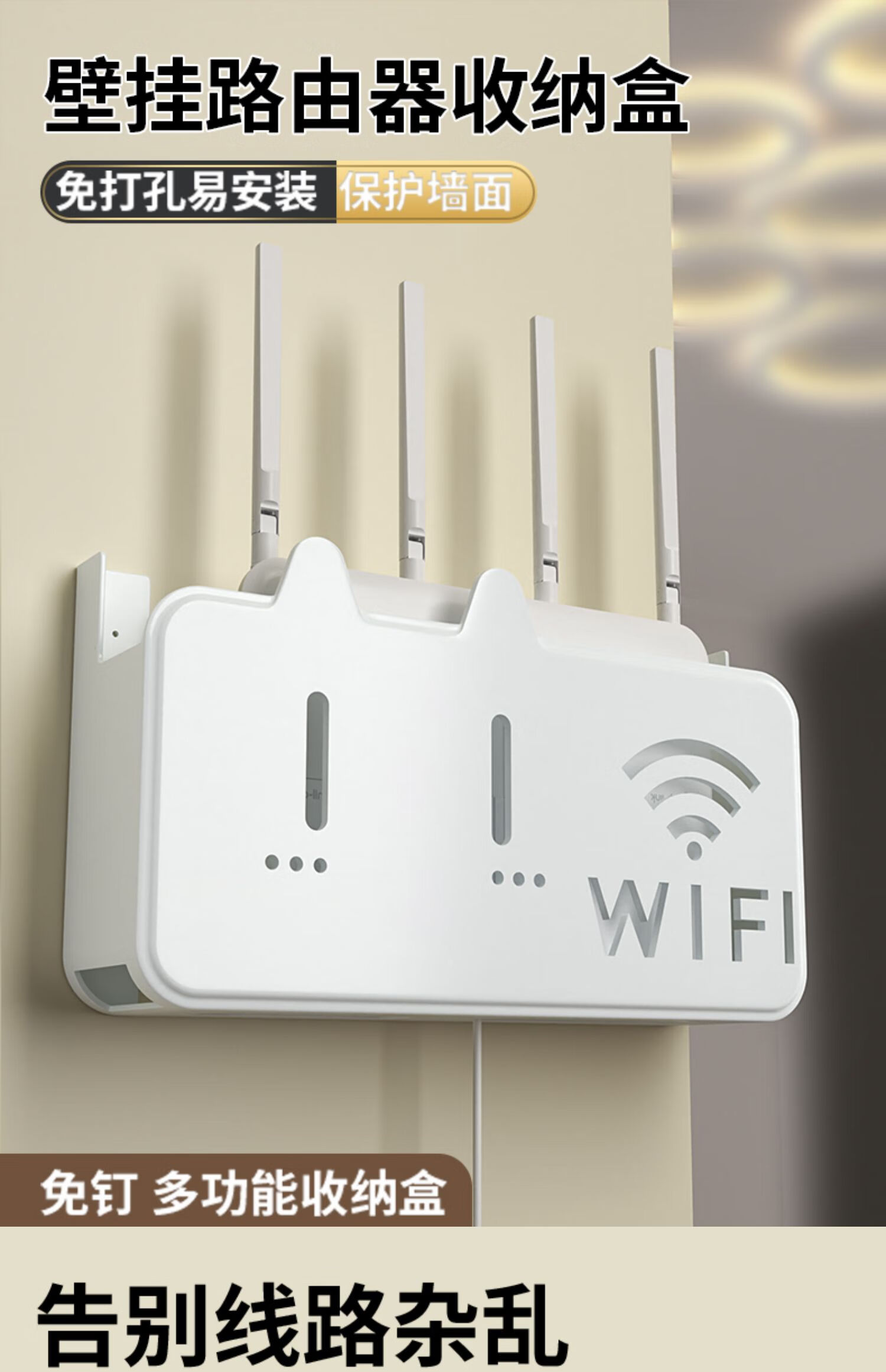八海鸟电视机顶盒遮丑神器路由器放置架wifi托架墙上壁挂式免打孔收纳盒