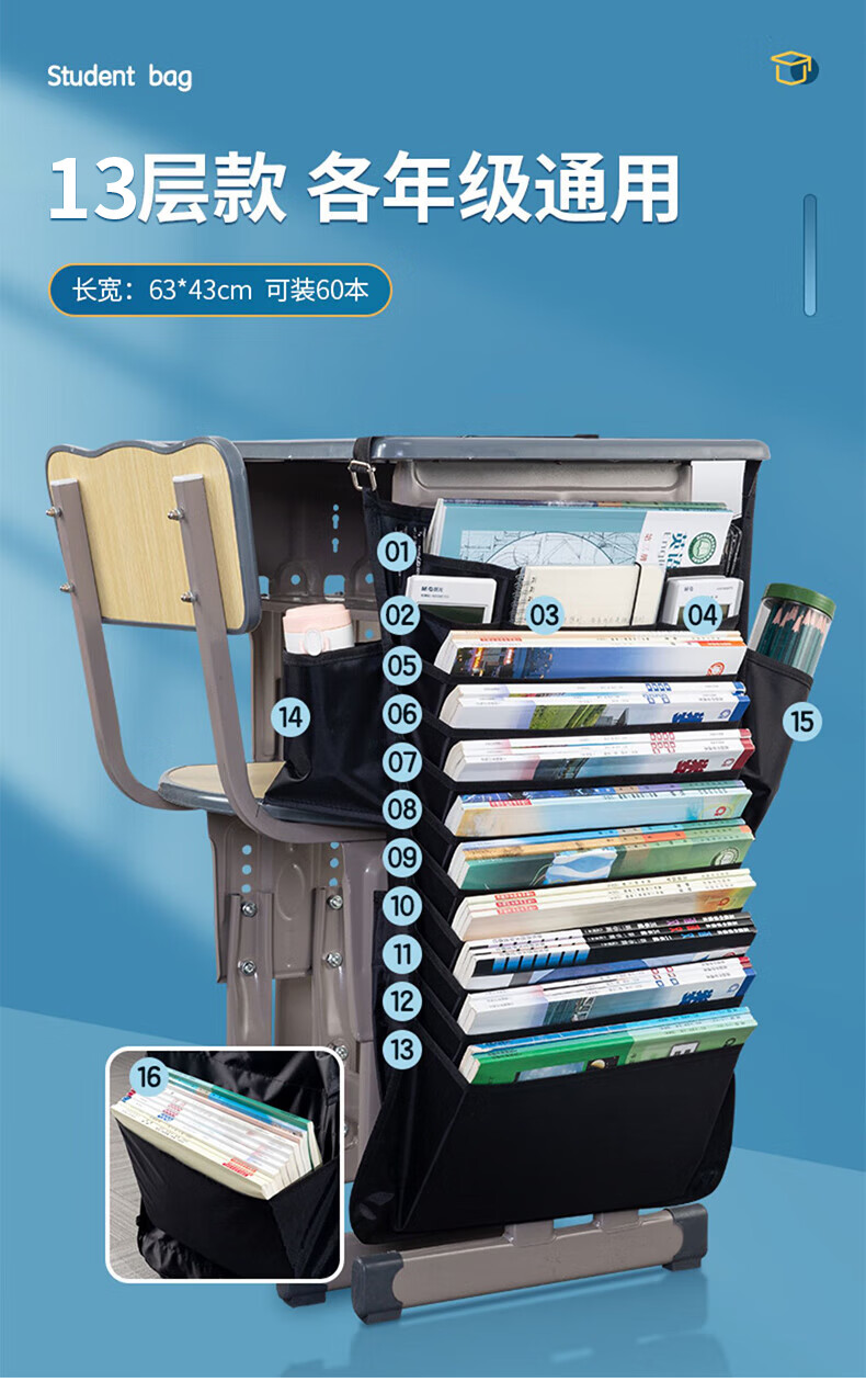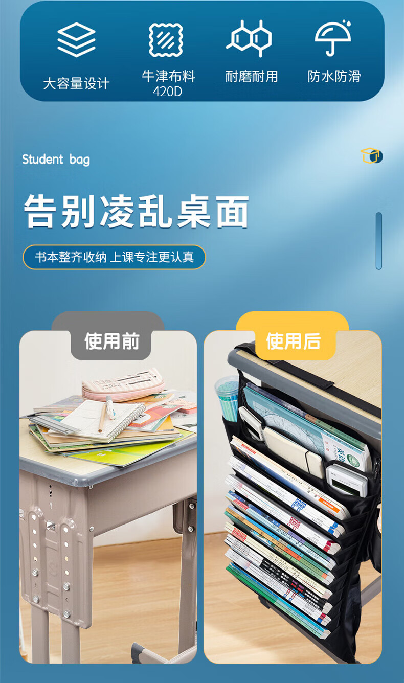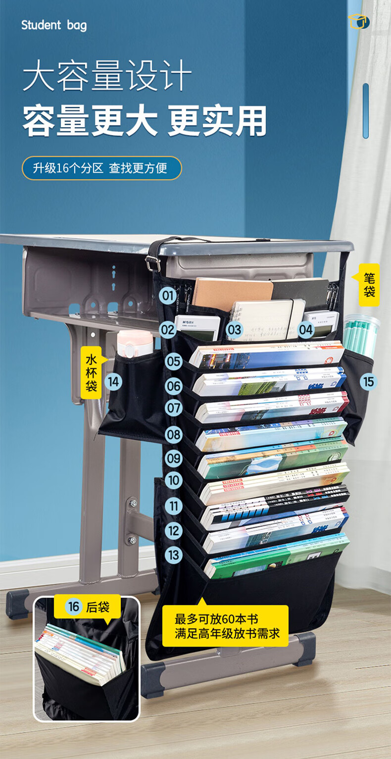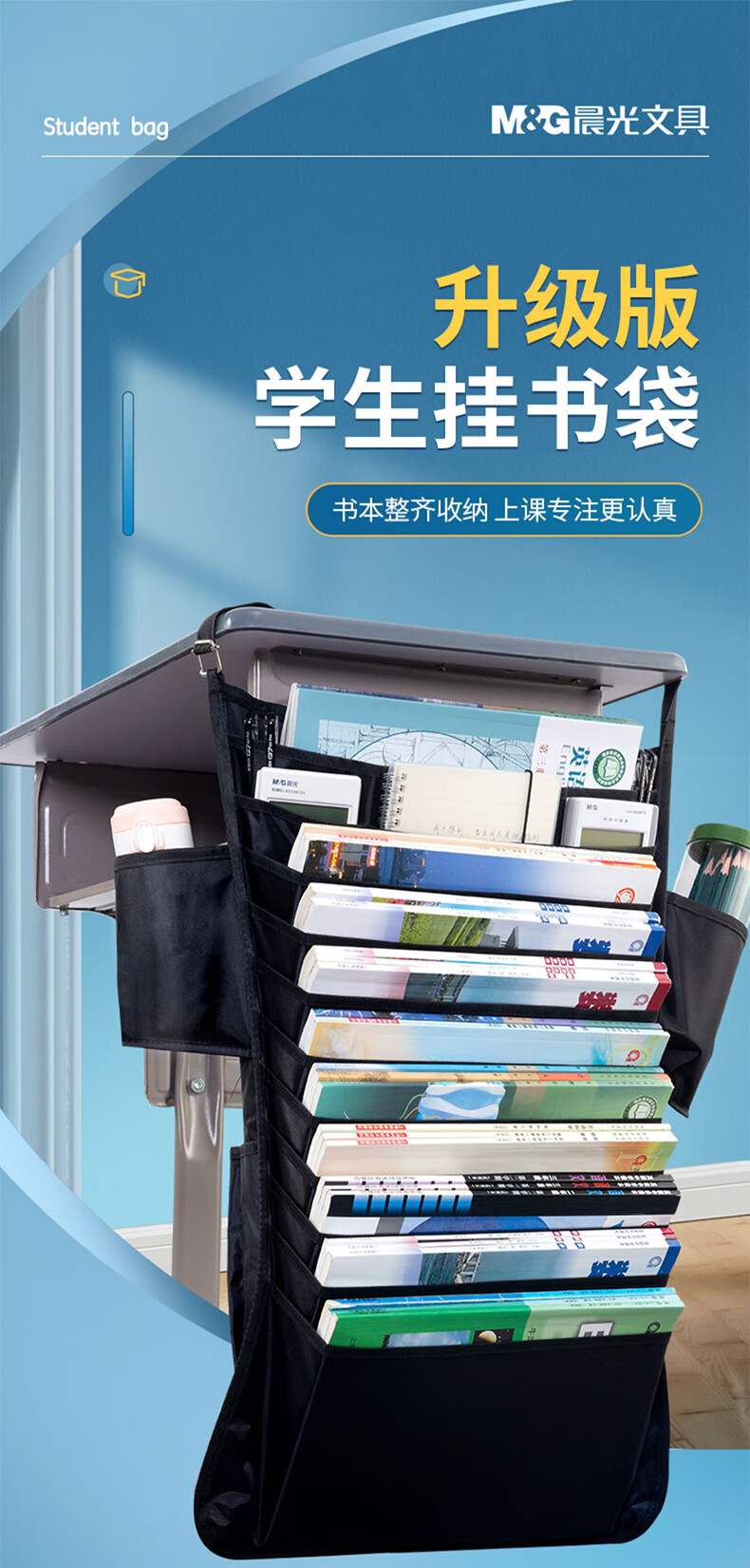 晨光(M&G)文具课桌挂书袋书本课桌收纳袋桌边书桌侧面学生书袋初高中学生 黑色ADM929WSA