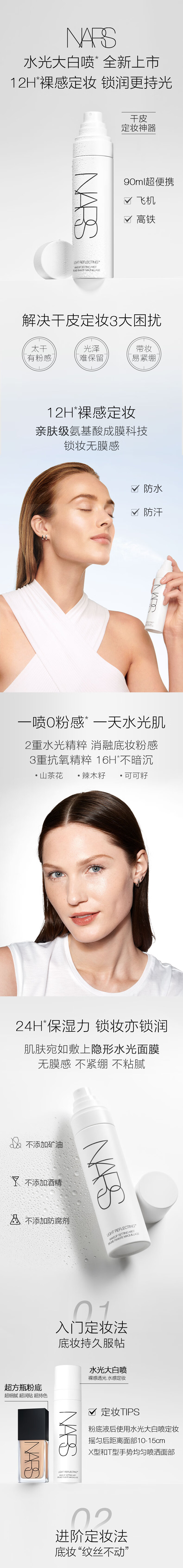 NARS【38现货立抢】全新水光大白喷90ml锁妆无膜感保湿不粘腻女神节
