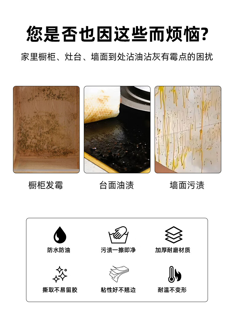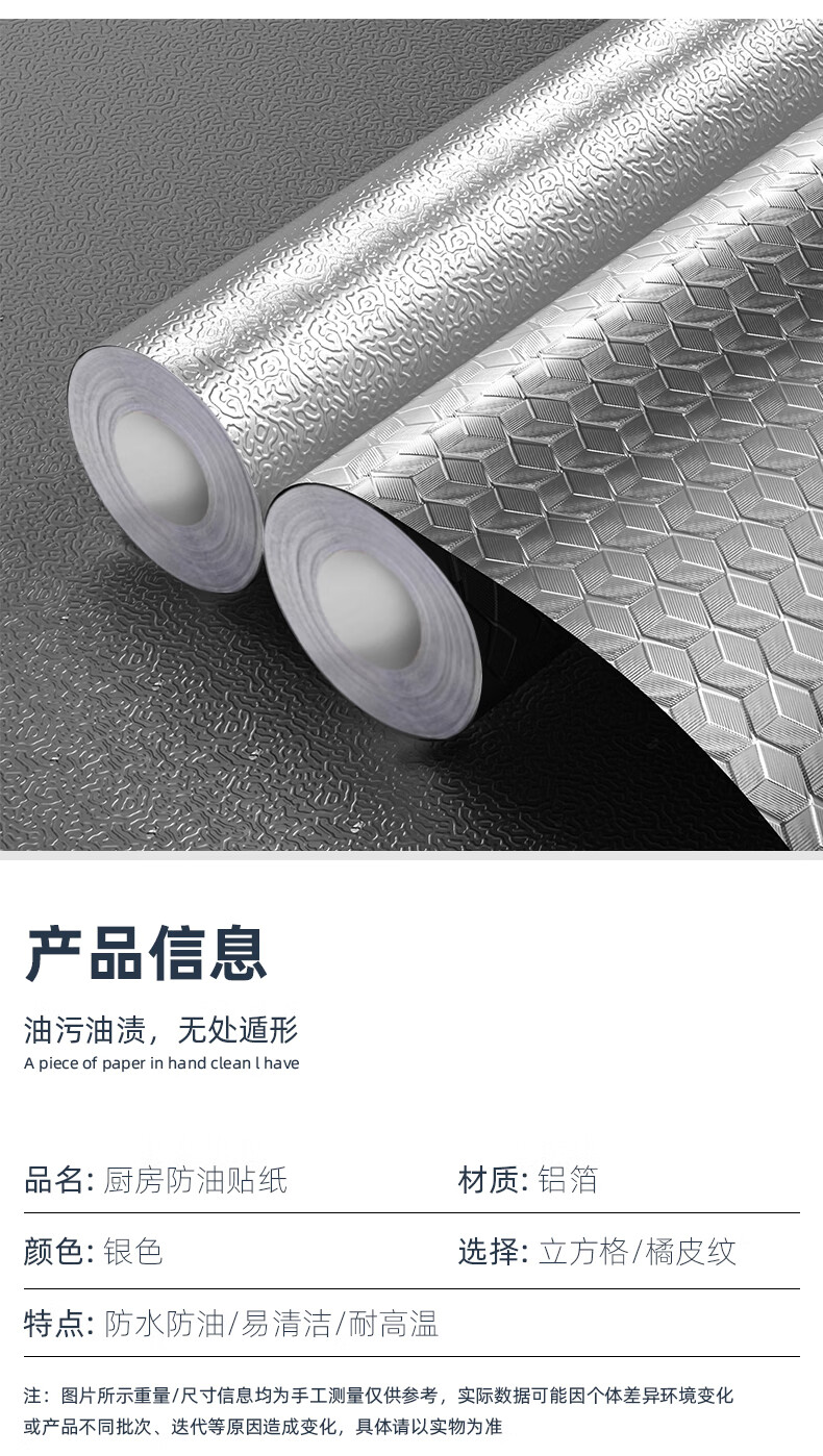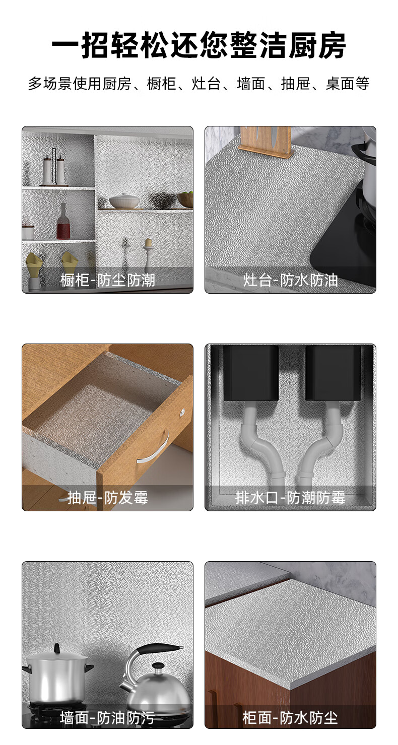 米乐奇加厚自粘厨房灶台防油污铝箔贴纸耐高温防水防潮防油污一擦即净600mm宽*10m长1卷装