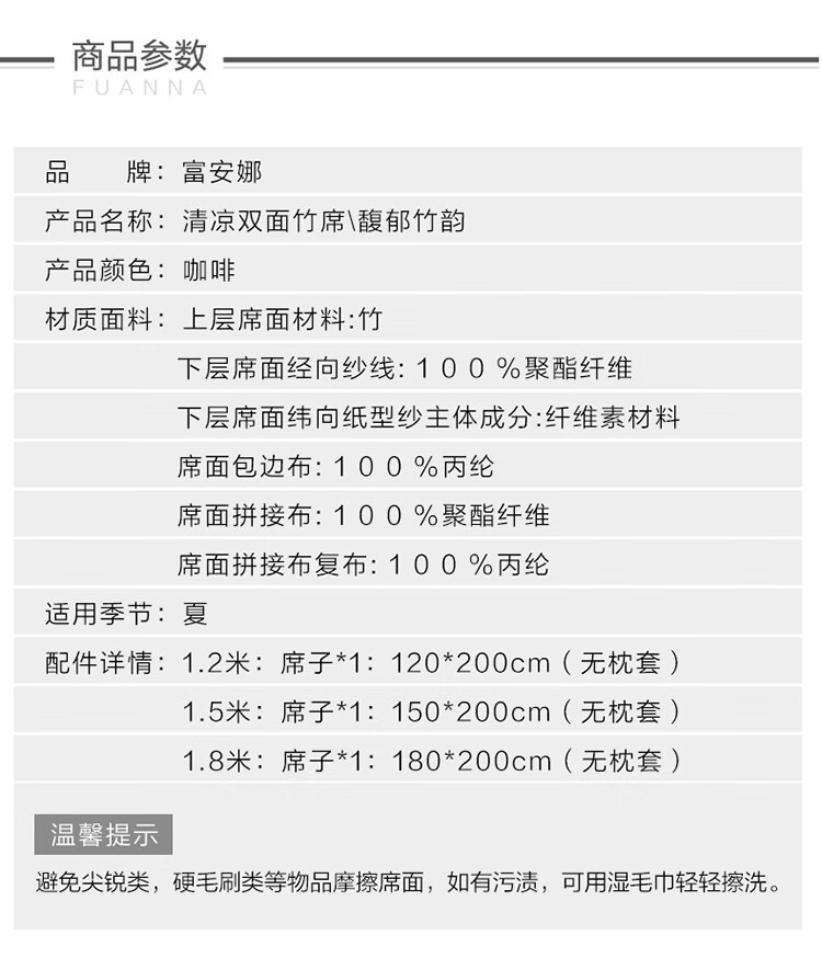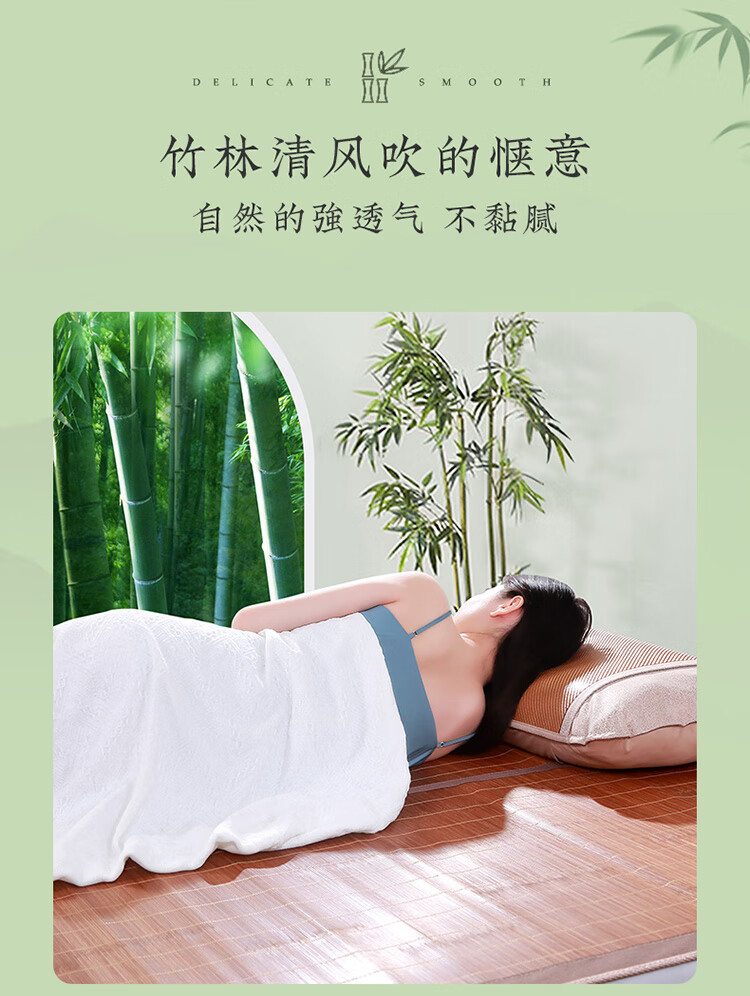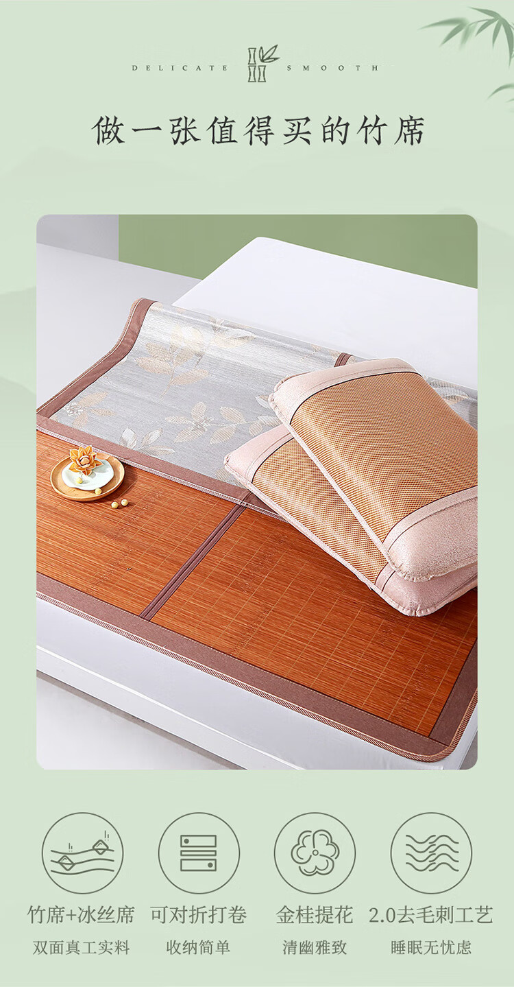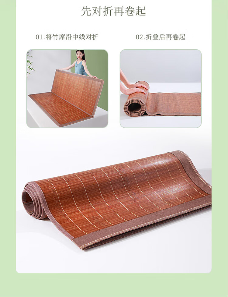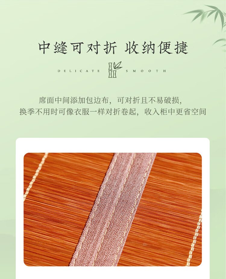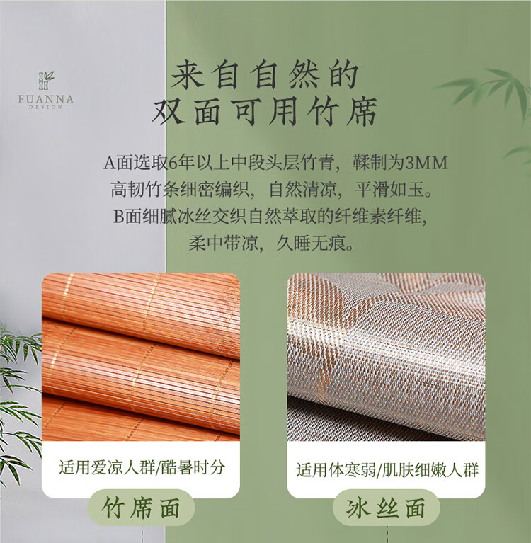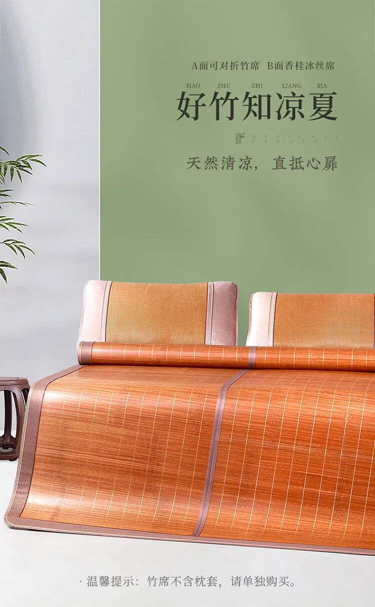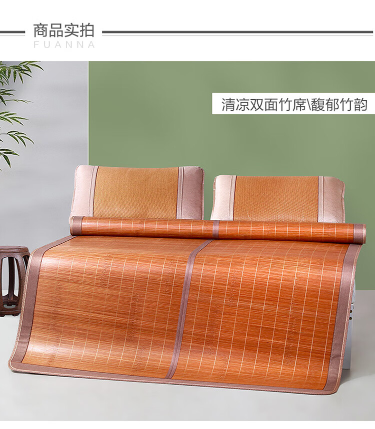 拼多多 富安娜头层竹青凉席竹席冰丝席双人单件席子1.8x2米【可折叠 双面可用】