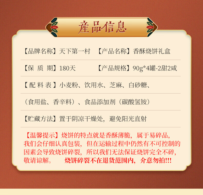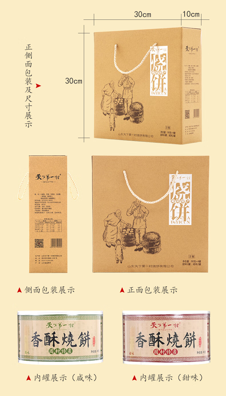 天下第一村周村香酥烧饼年货礼盒90gx4盒甜咸香酥芝麻饼山东特产孕妇零食 2咸2甜