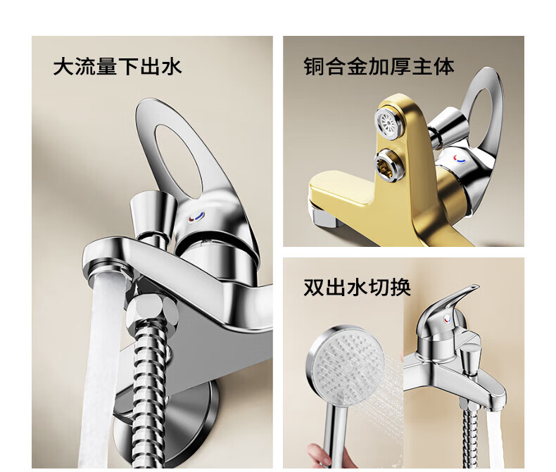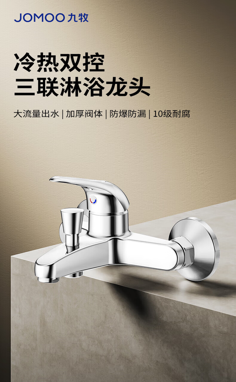 九牧混水阀铜合金加厚防爆淋浴龙头三联热水器混水阀浴缸水龙头35077