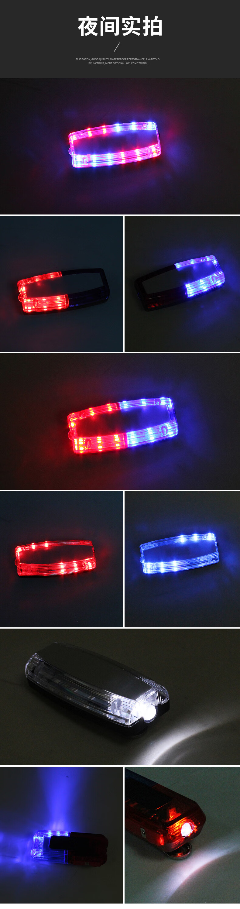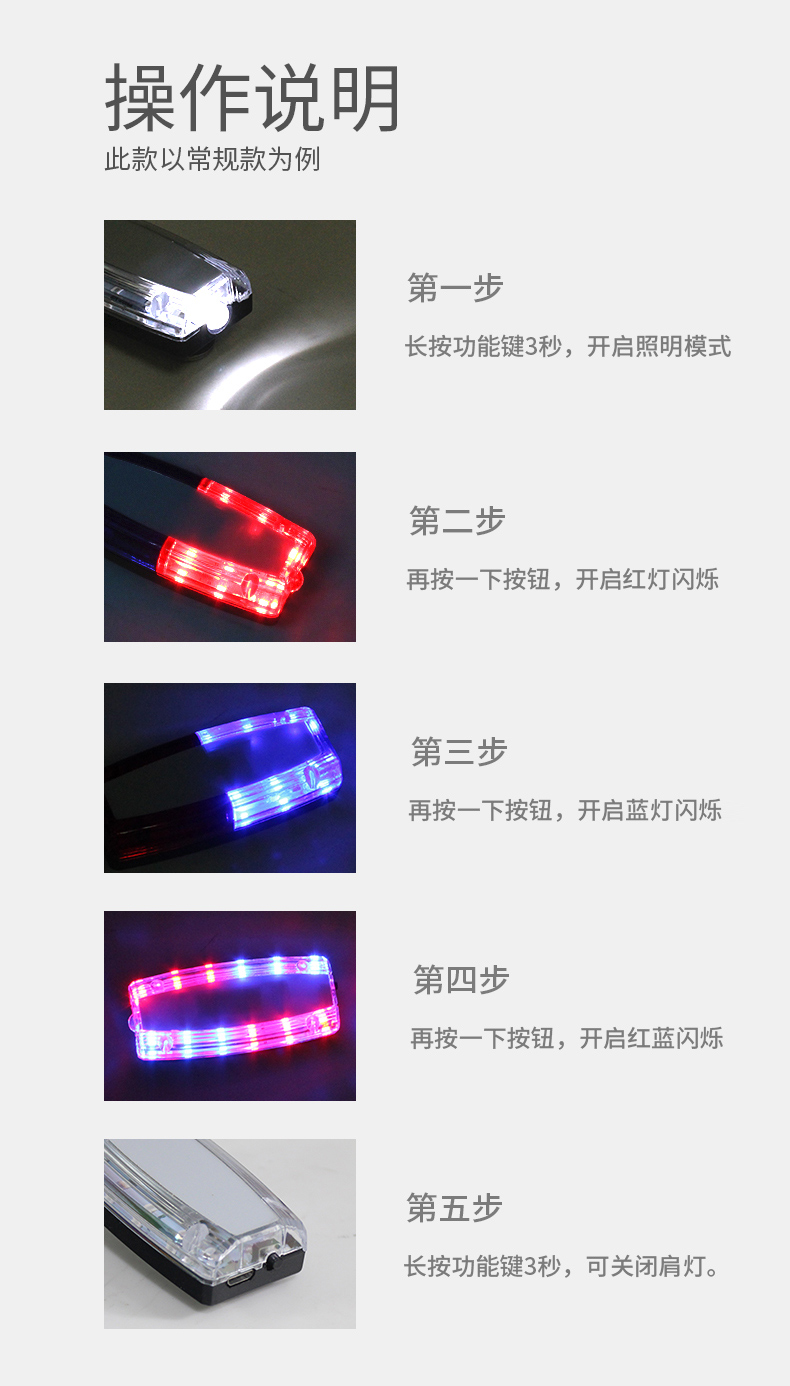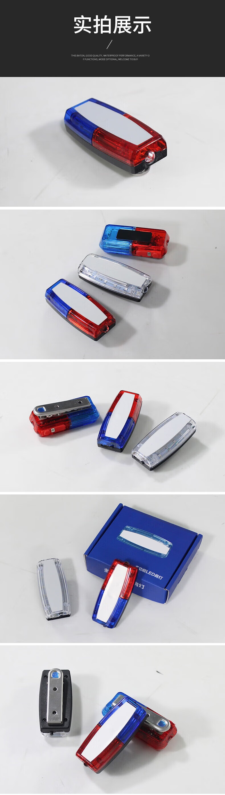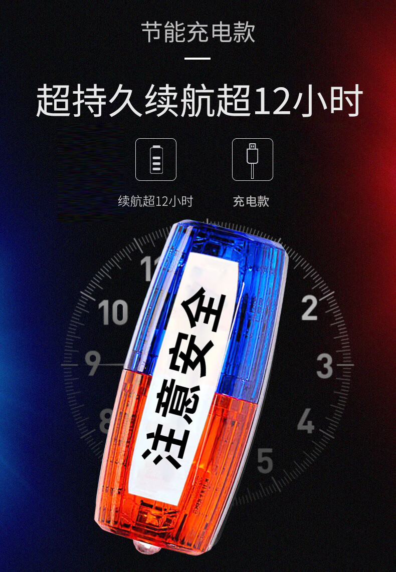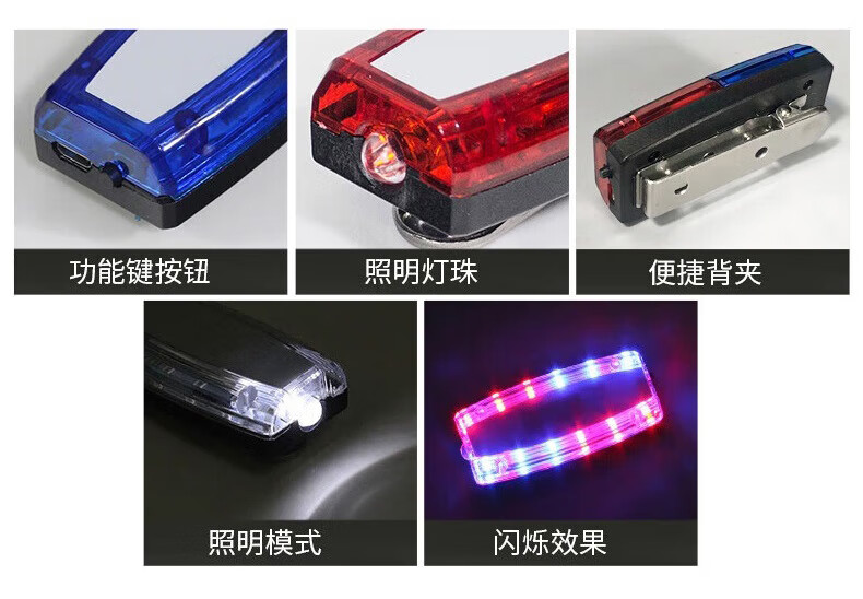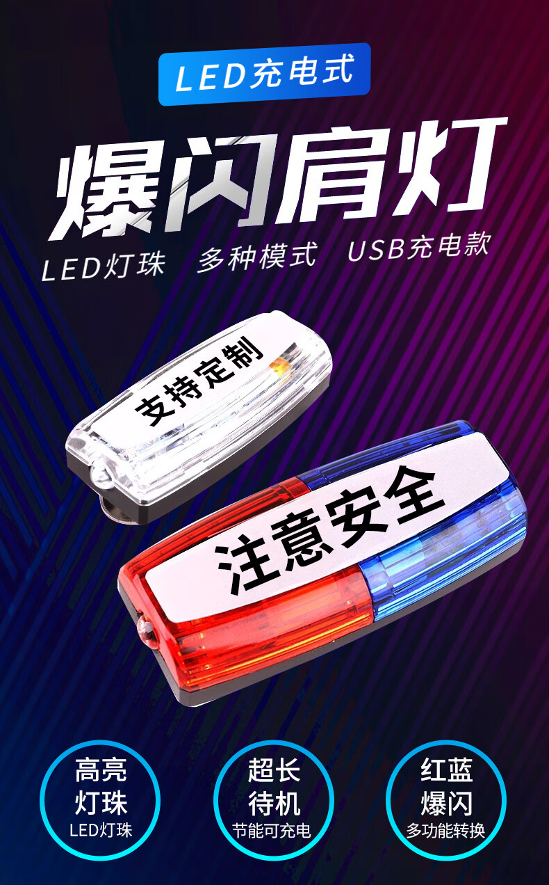 百舸 肩灯 红蓝爆闪警示灯 保安值勤巡逻便携式肩夹LED闪光灯 骑行夜跑充电款 注意安全 CW541191