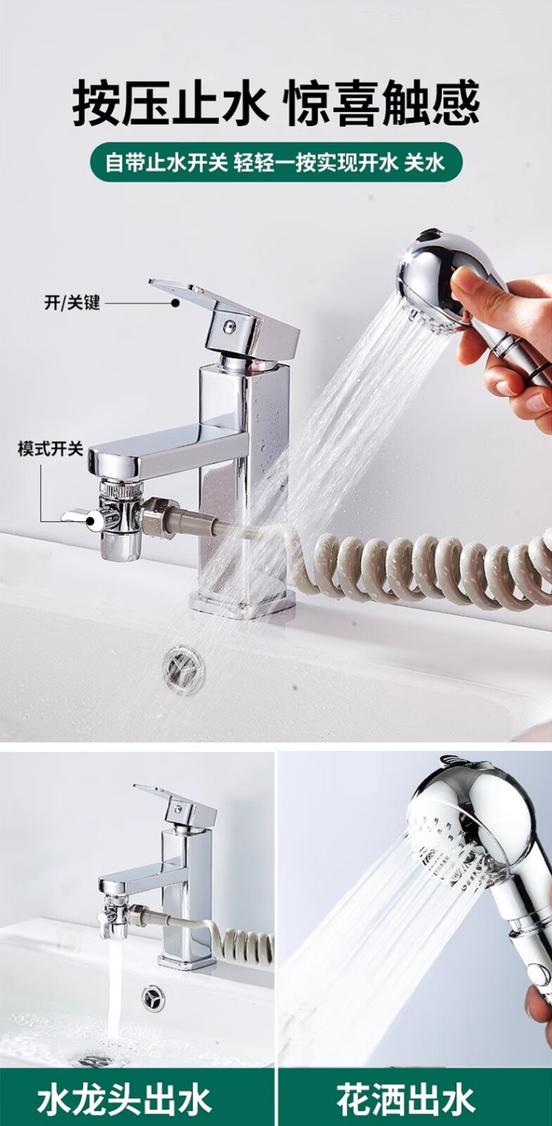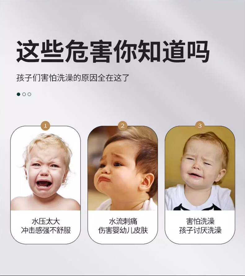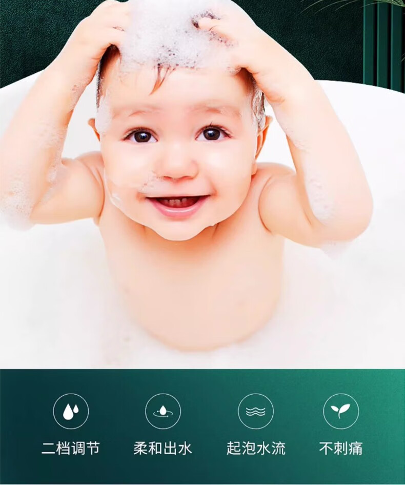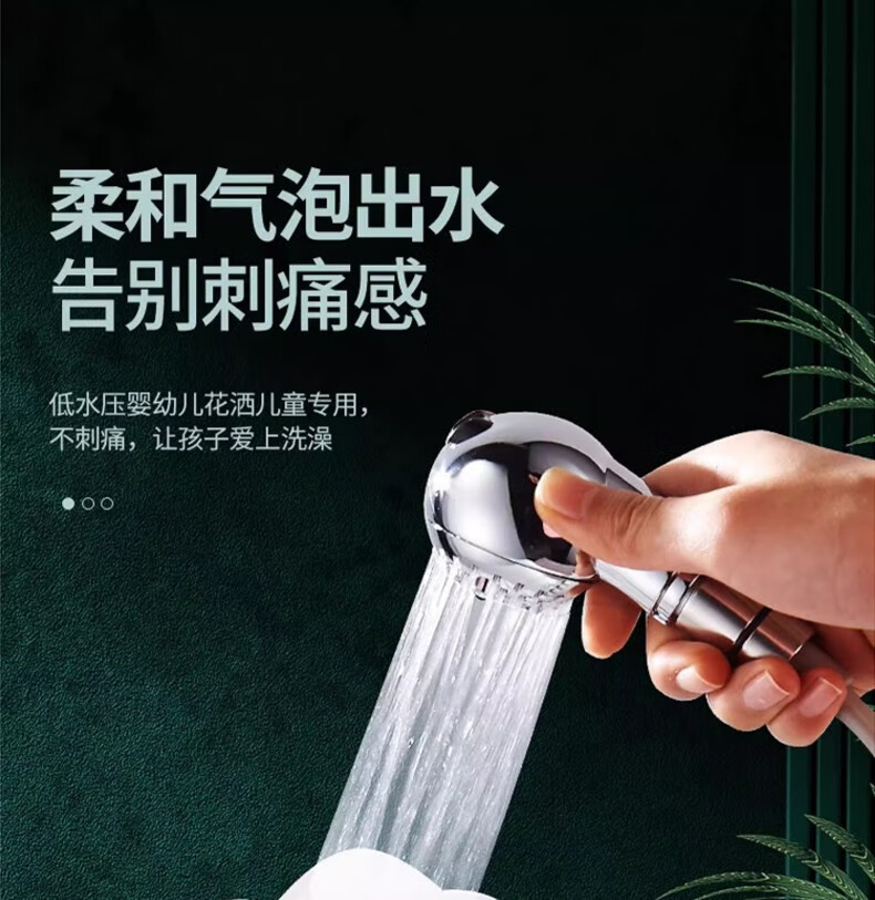 HOMK【德国】儿童花洒喷头婴儿宝宝洗澡洗头超柔手持淋浴小花洒莲蓬头 婴儿单花洒【星光银】 柔和出水丨一键止水