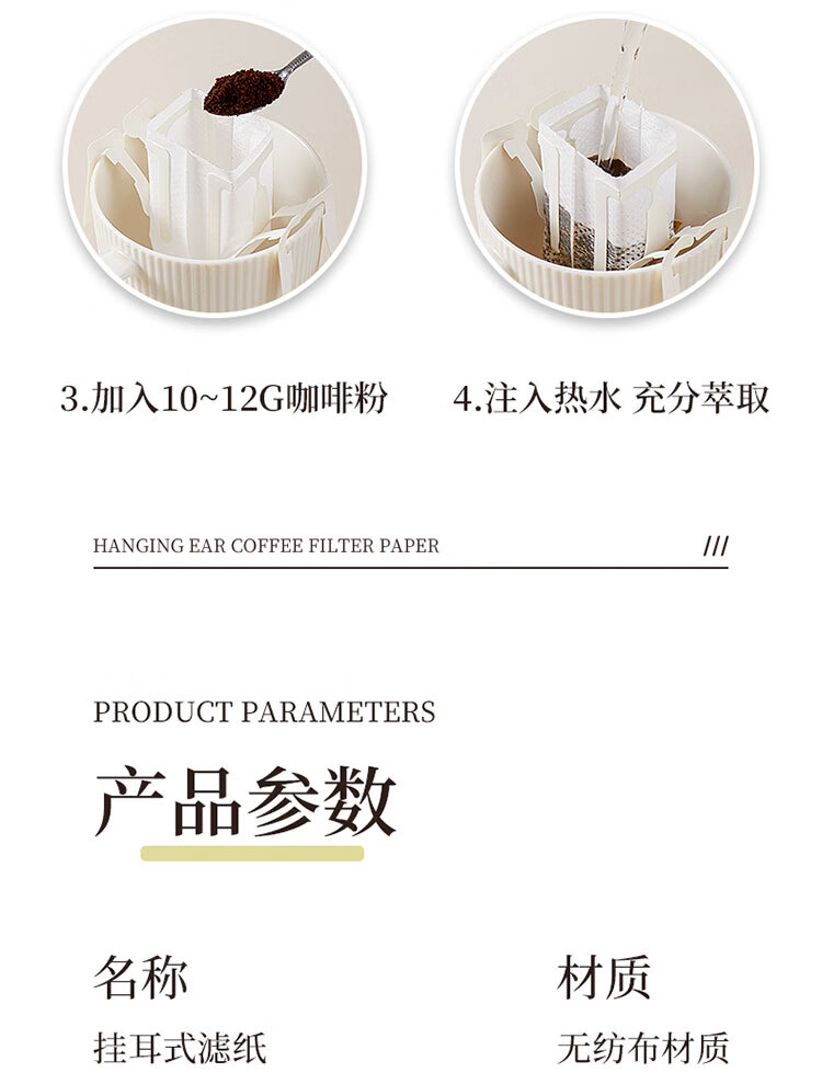 拜杰挂耳咖啡滤纸便携滴漏式手冲滤杯过滤纸袋滤网咖啡粉滤袋