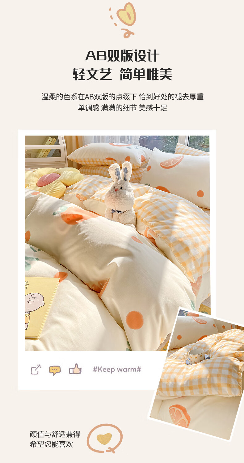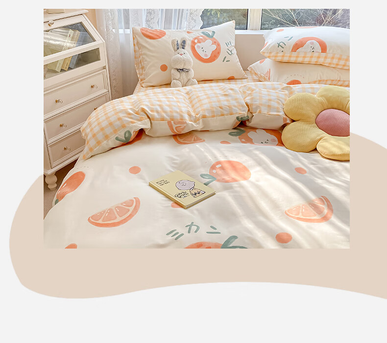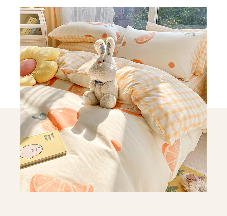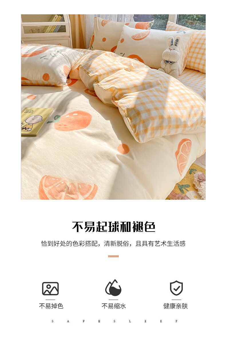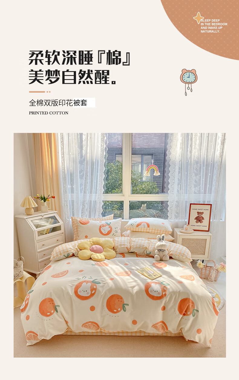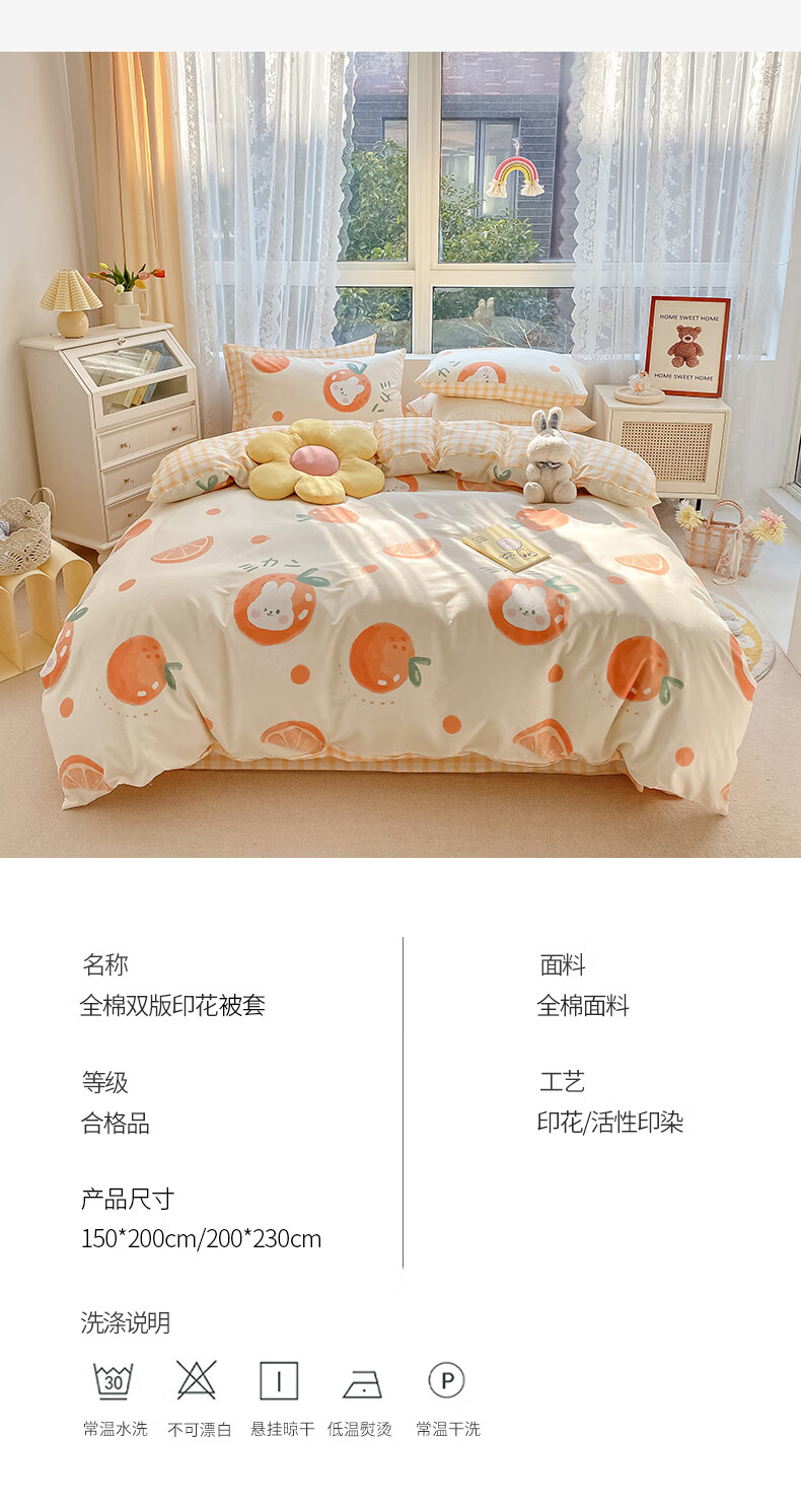 拼多多 无印良品A类100%纯棉被套单件 全棉床上用品被罩200*230cm 元气橙橙