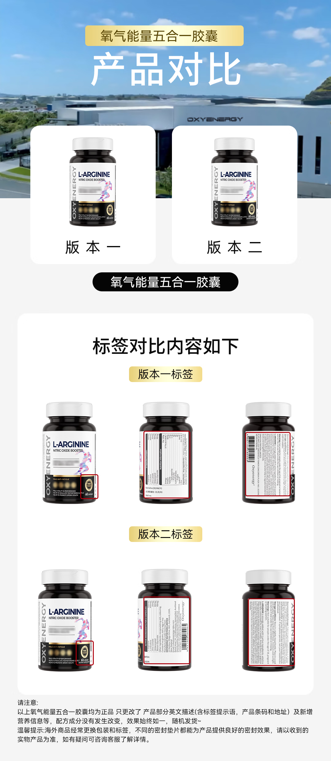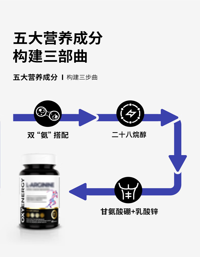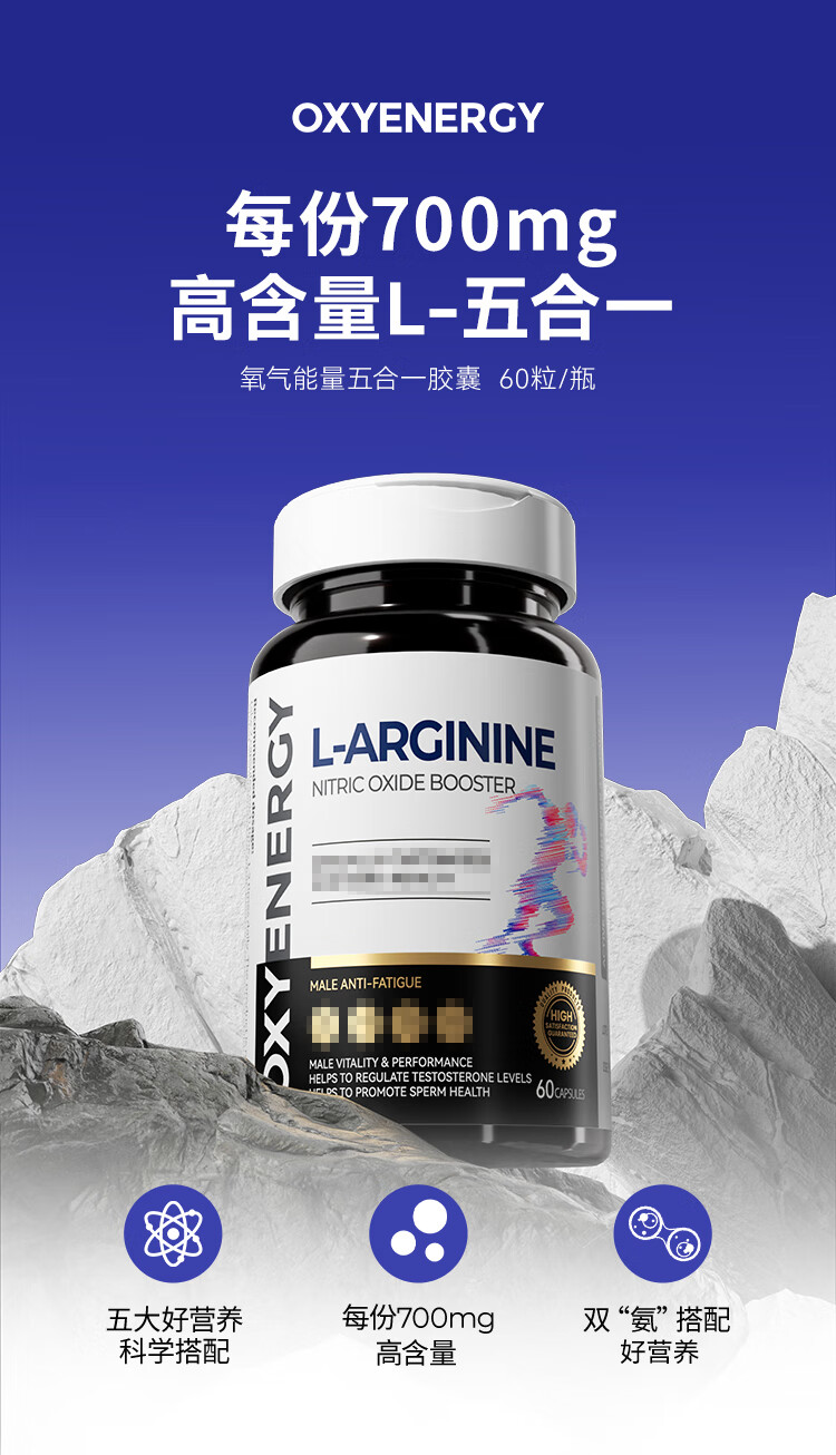 Oxyenergy氧气能量精氨酸五合一瓜氨酸胶囊 60粒/瓶 锌男士小钢炮健身营养