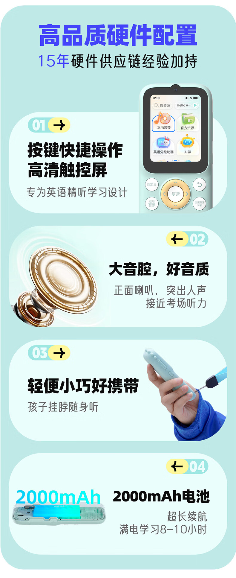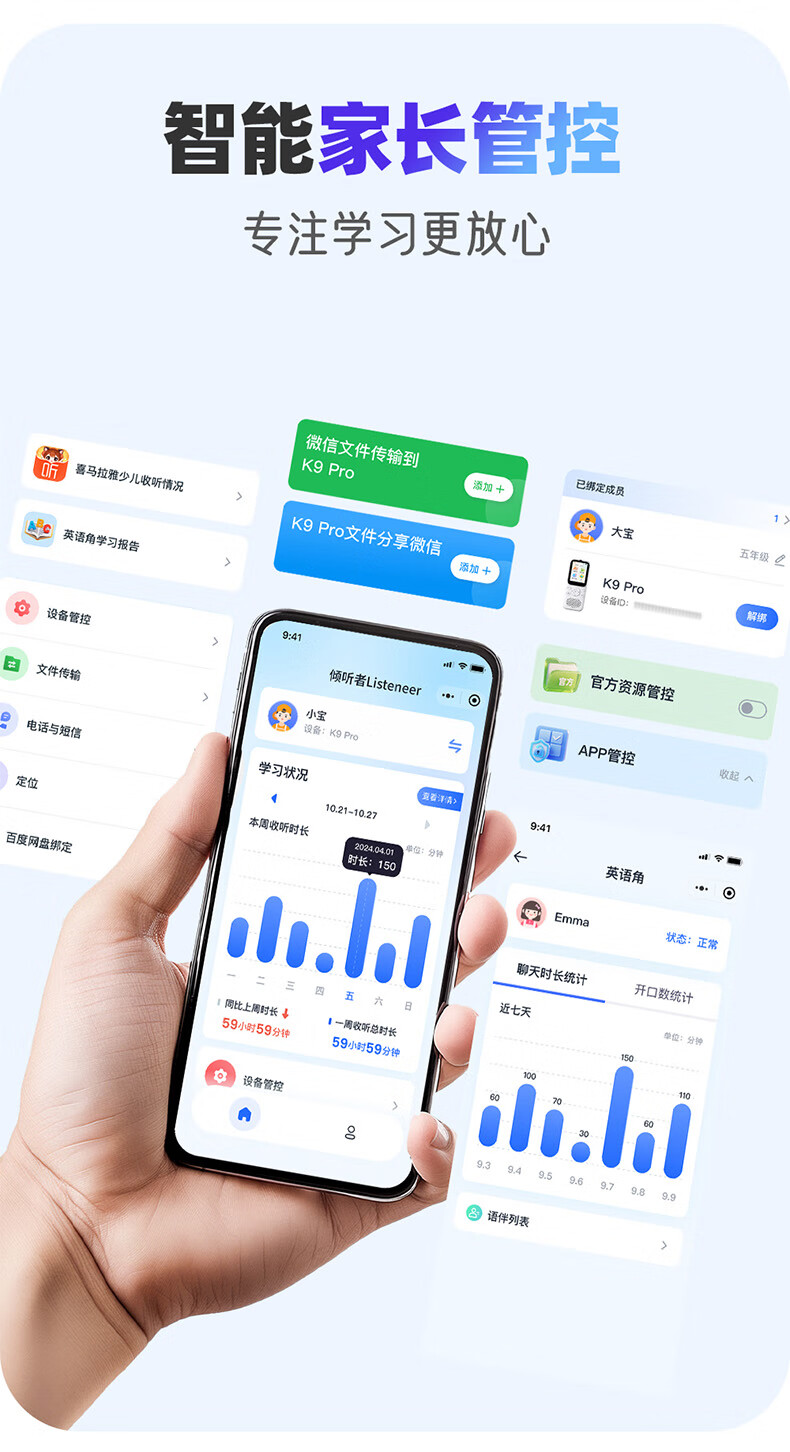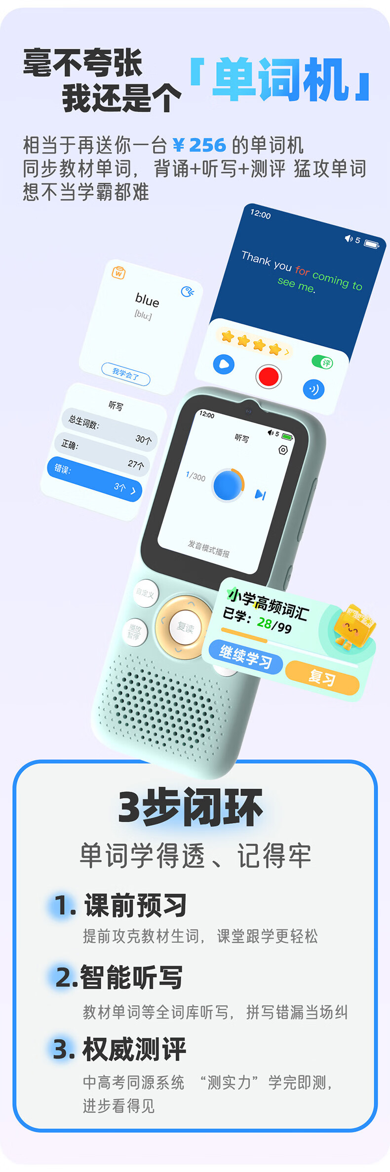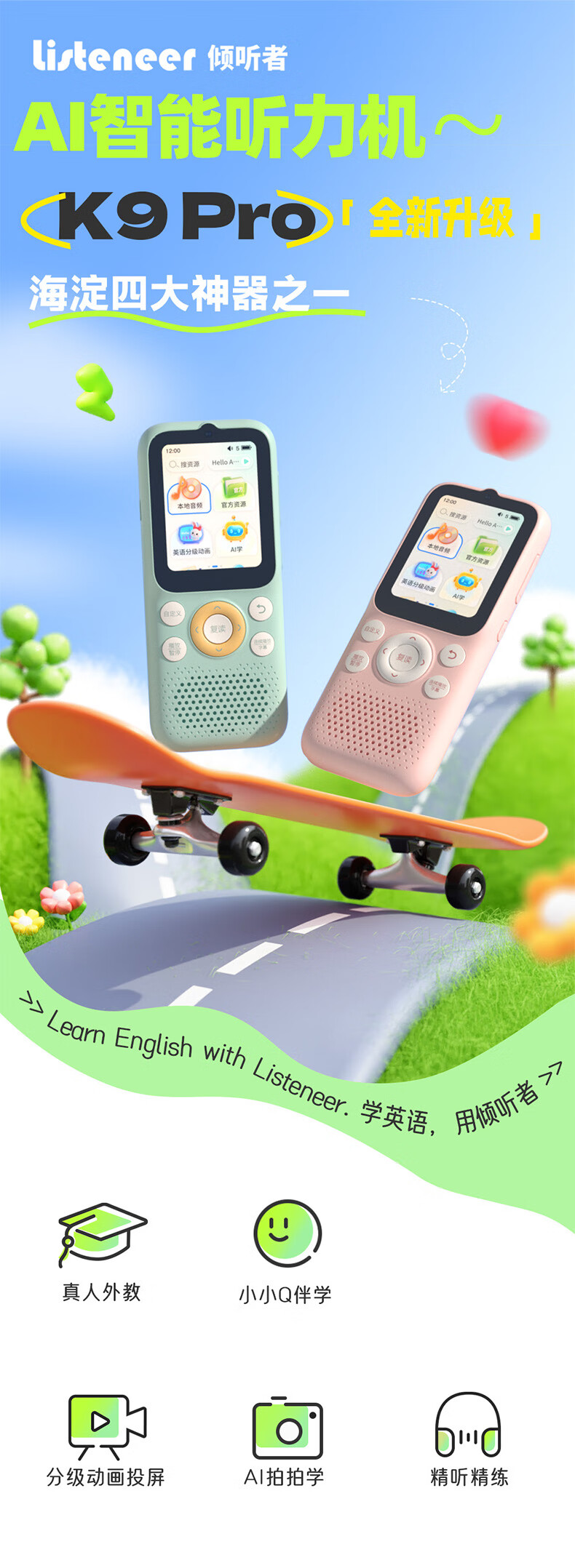 Listeneer倾听者K9Pro听力宝学习机英语听力随身听磨耳朵复读机英语听读神器伴学机研学机拍学机 蓝128G