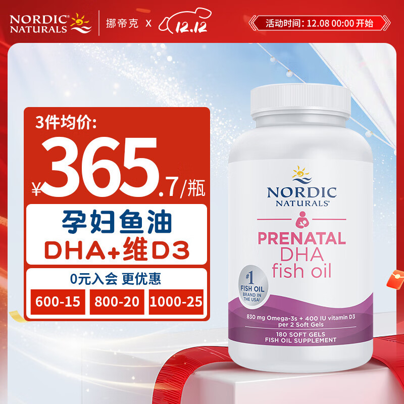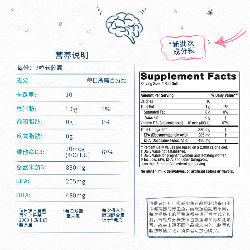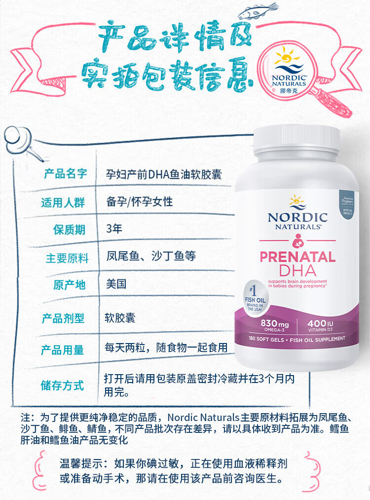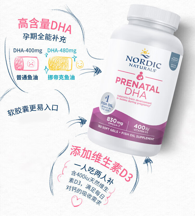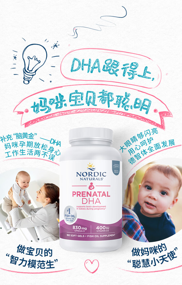 挪威小鱼孕妇专用dha鱼油软胶囊 备孕孕期深海鱼油孕妇进口营养品 180粒 1瓶
