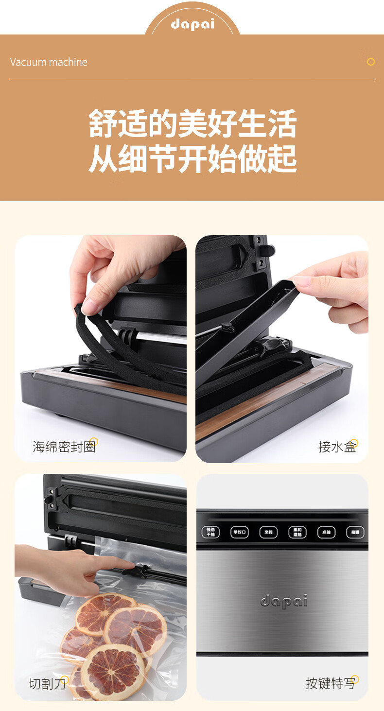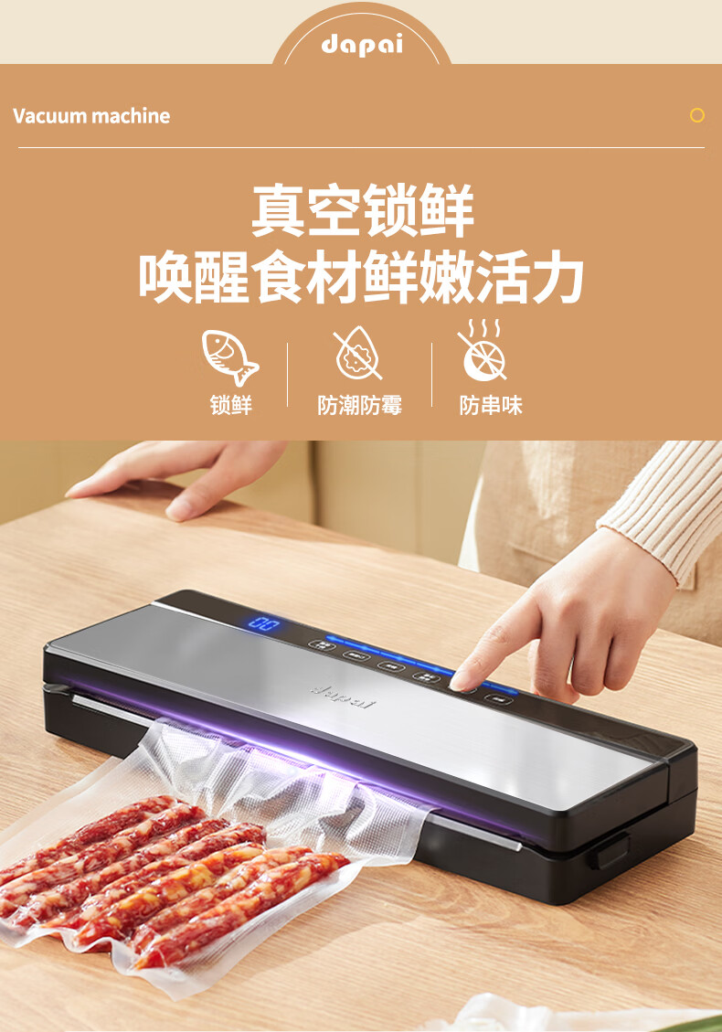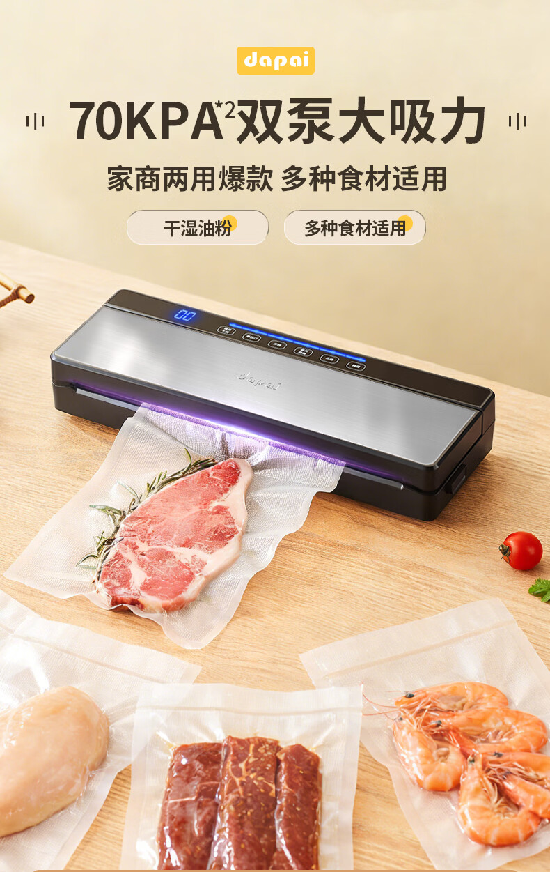 达派(dapai) 德国真空封口机抽压缩封口机食品包装机双泵保鲜袋塑封机抽真空打包机 升级双泵大吸力款(下单享真空袋)