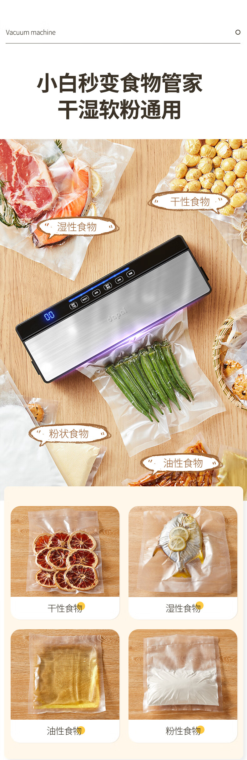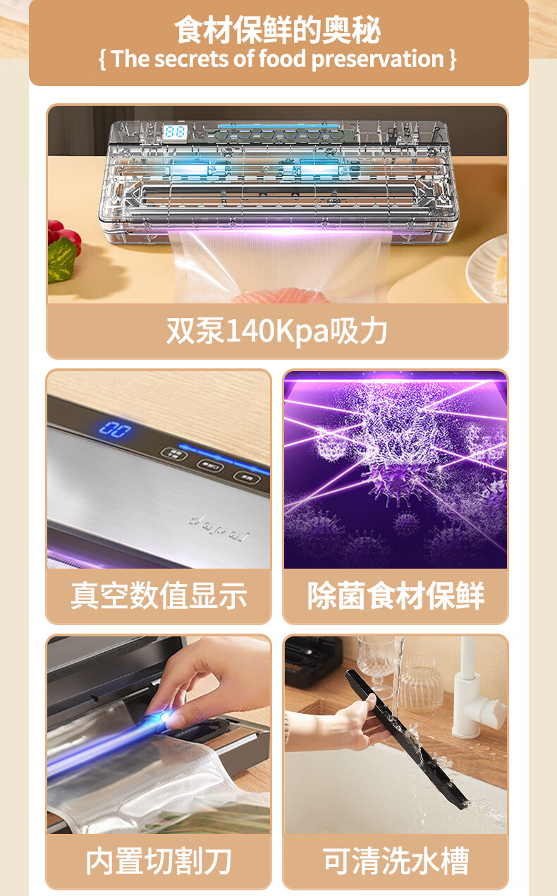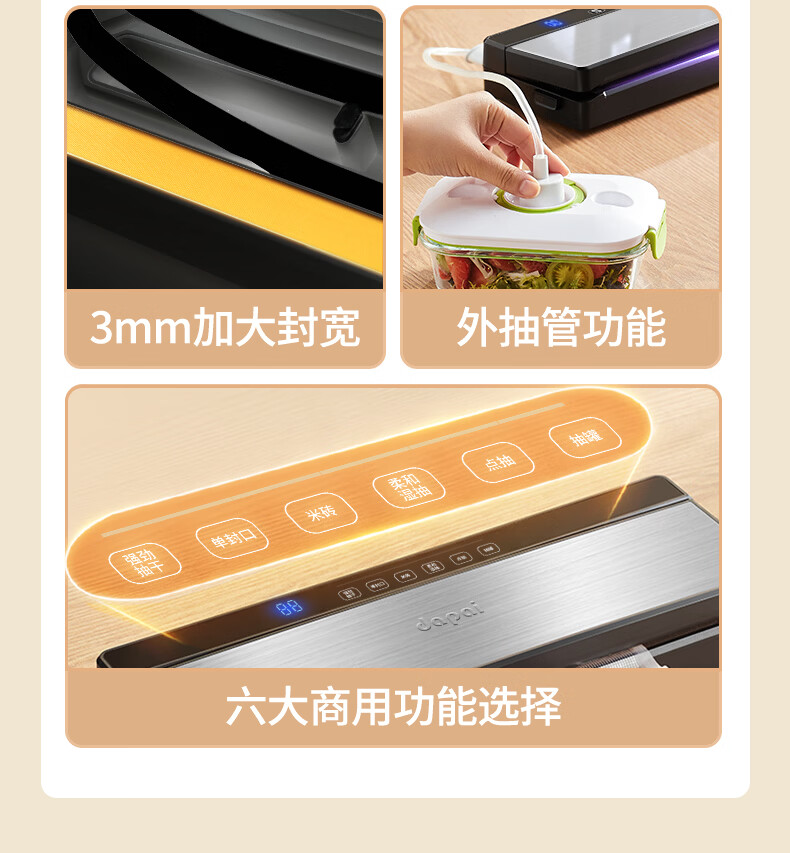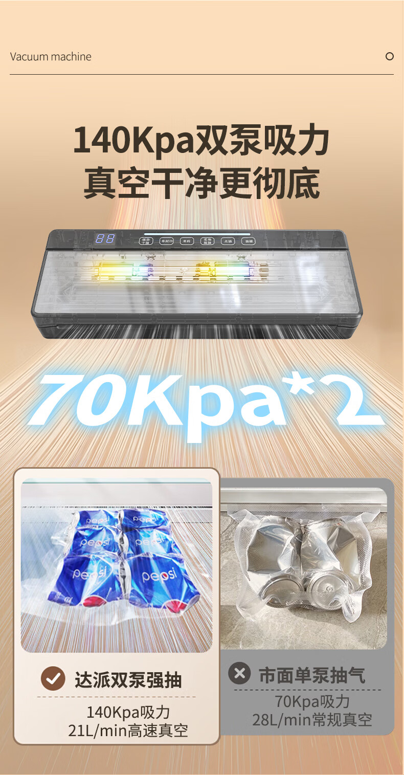 达派(dapai) 德国真空封口机抽压缩封口机食品包装机双泵保鲜袋塑封机抽真空打包机 升级双泵大吸力款(下单享真空袋)