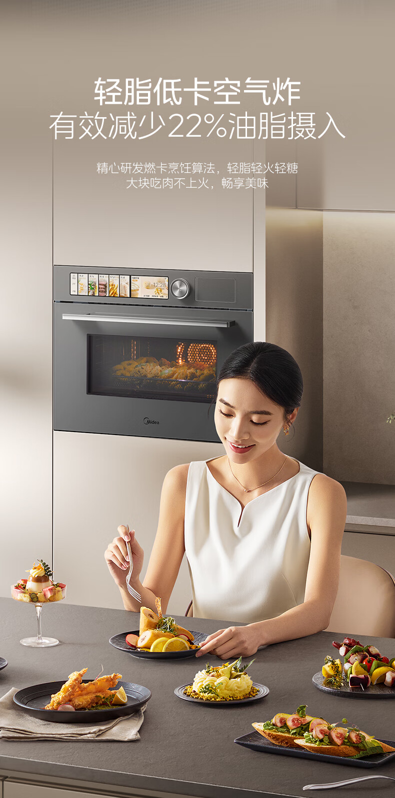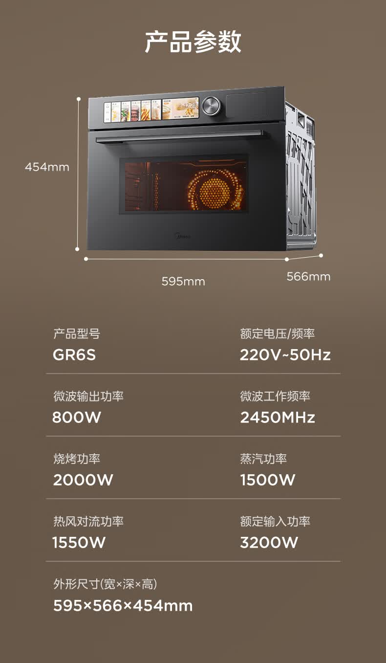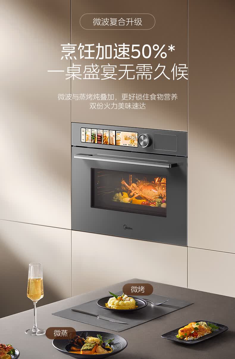 美的(Midea)【0.2s极速升温】美的知味感R6S 嵌入式微蒸烤一体机GR6S 温湿智控 微蒸烤炸炖一体蒸烤箱60L