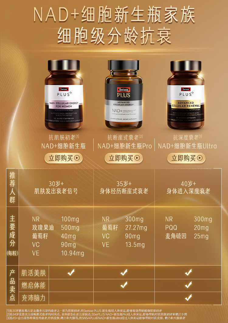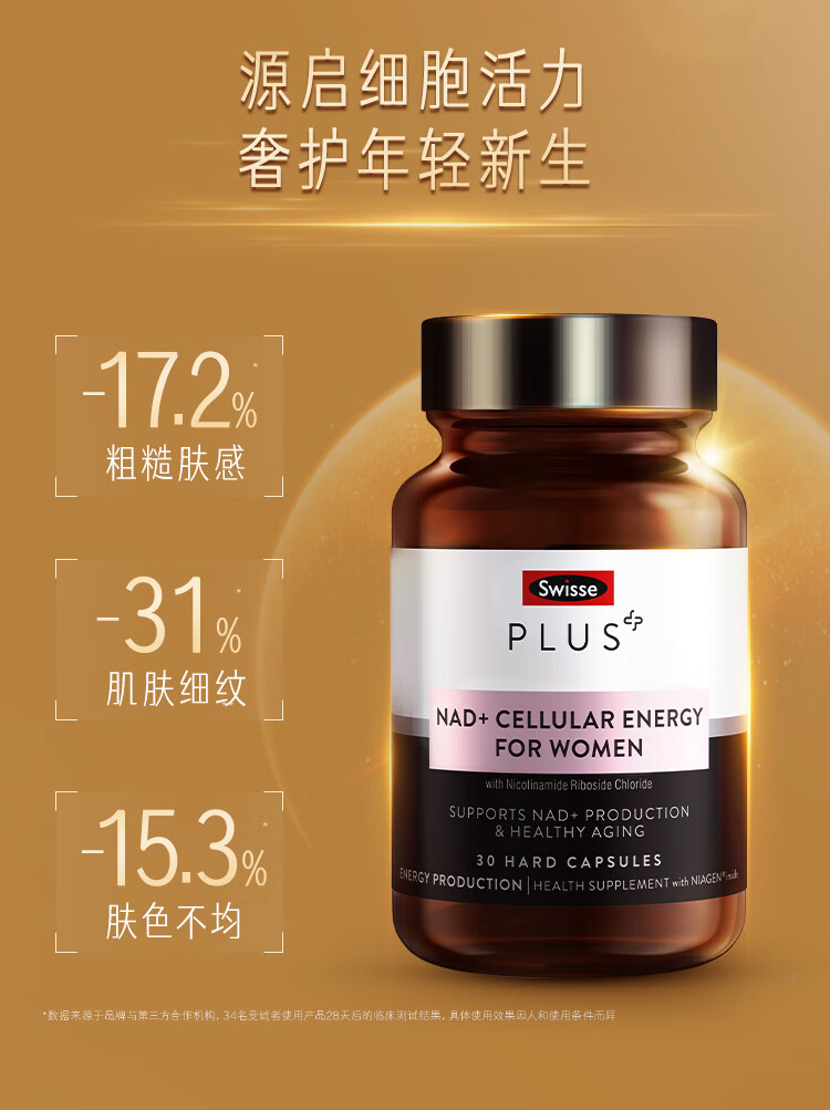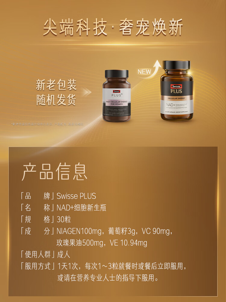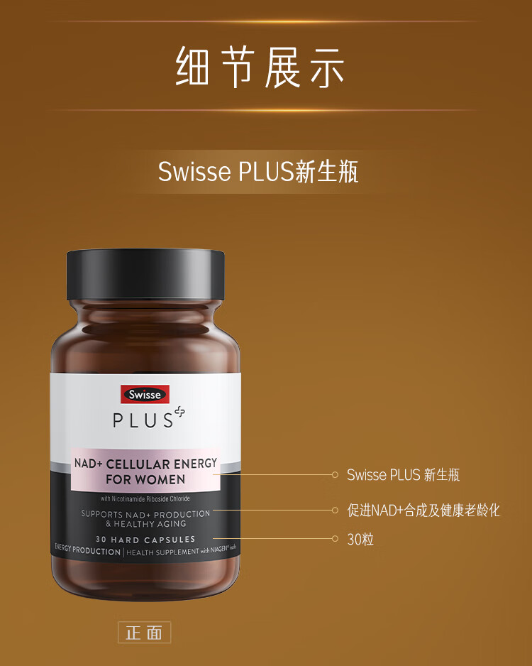Swisse斯维诗PLUS NAD+细胞新生瓶 专利NR抗衰嫩肤修护 焕活瓶30粒/瓶
