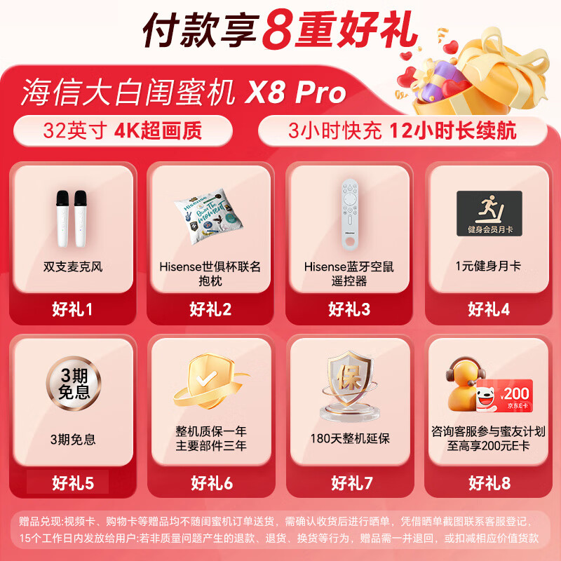 海信大白闺蜜机X8 Pro 32英寸4K 3h快充 12h长续航大平板 AI全新升级 一屏多形态 女生礼物