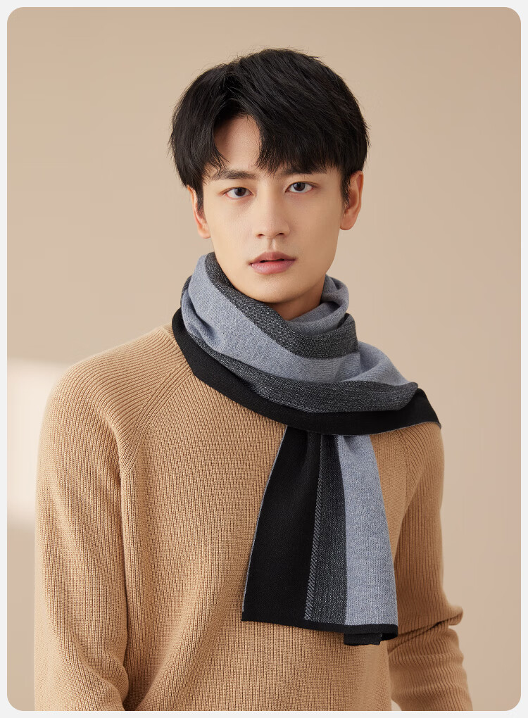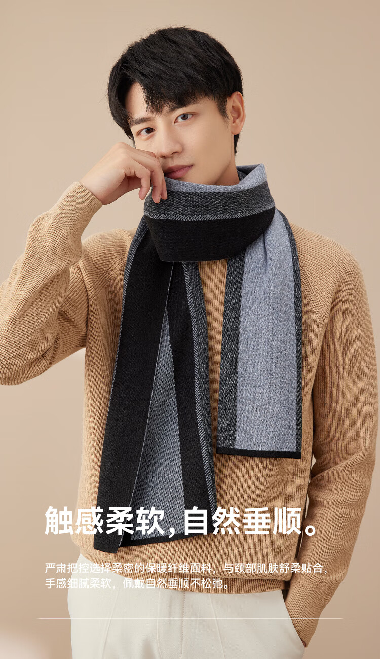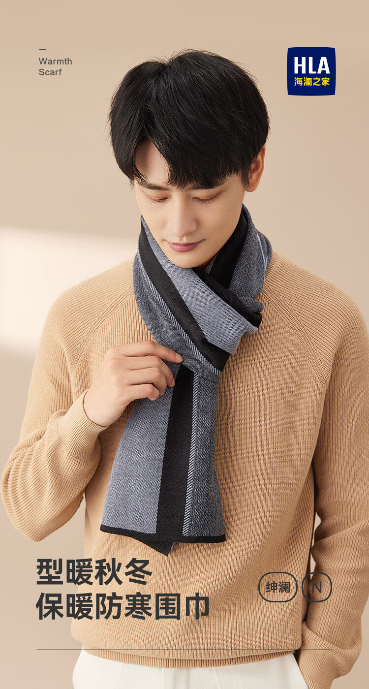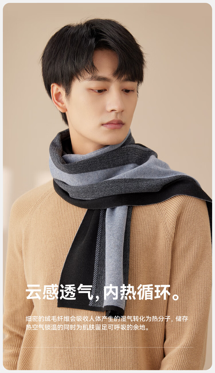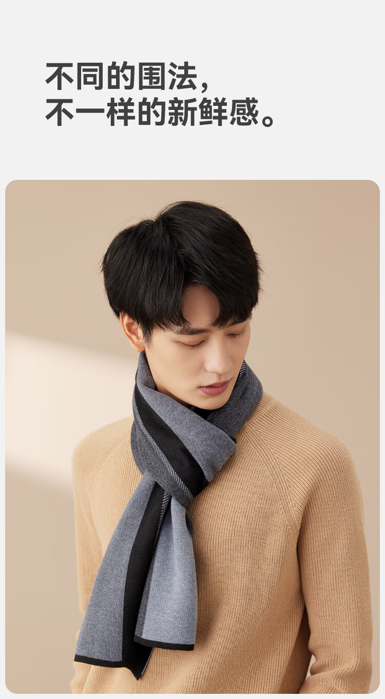 海澜之家(HLA)围巾含羊毛男士围脖脖套生日礼物男生送男朋友送爸爸 黑灰色 均码