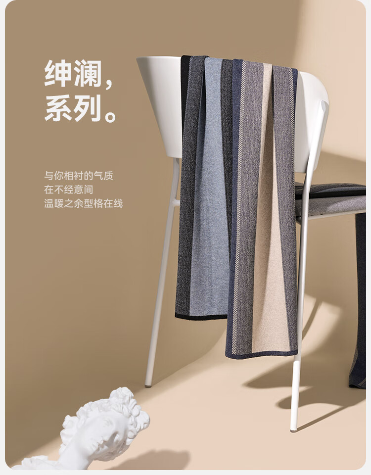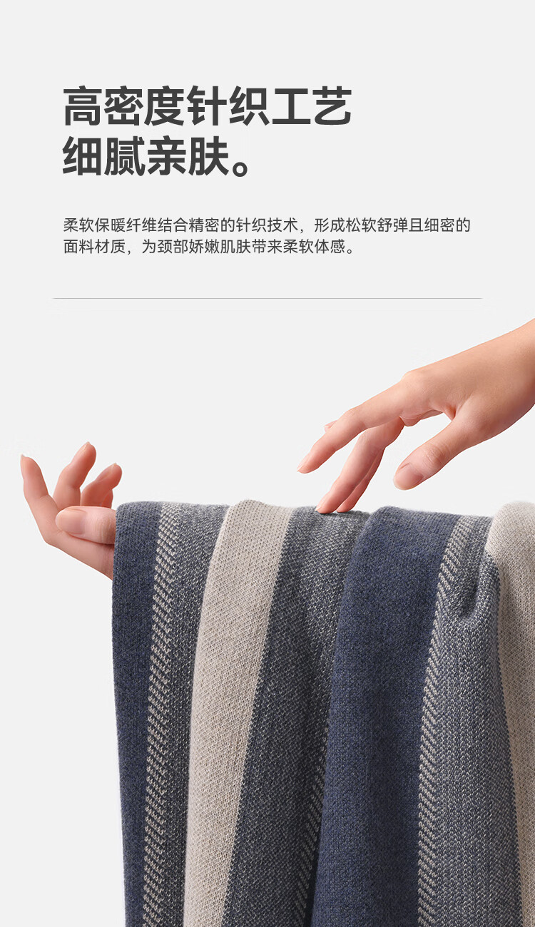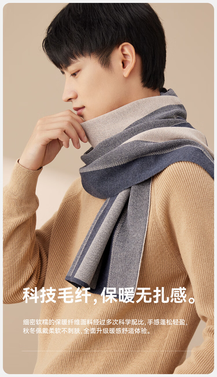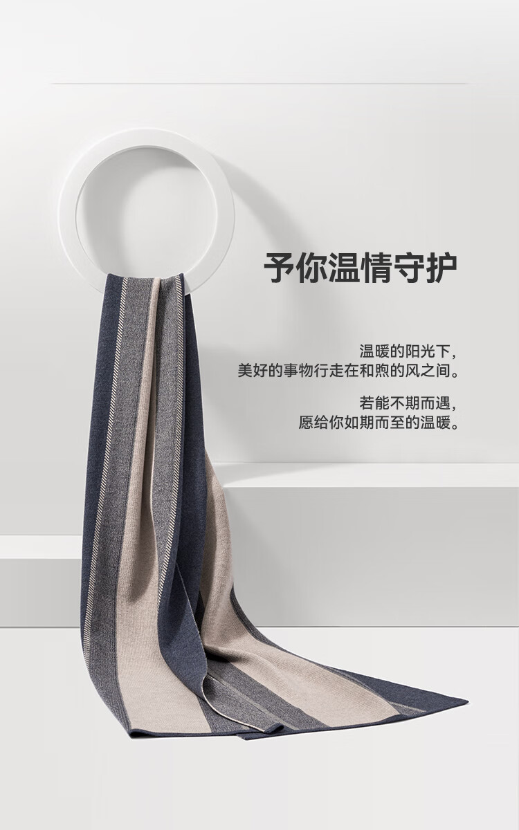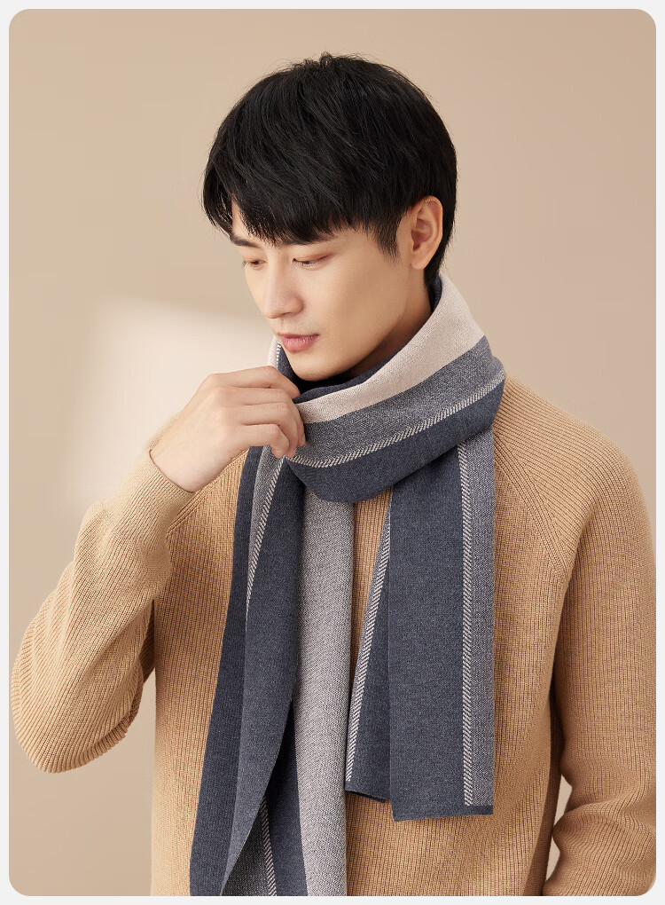 海澜之家(HLA)围巾含羊毛男士围脖脖套生日礼物男生送男朋友送爸爸 黑灰色 均码
