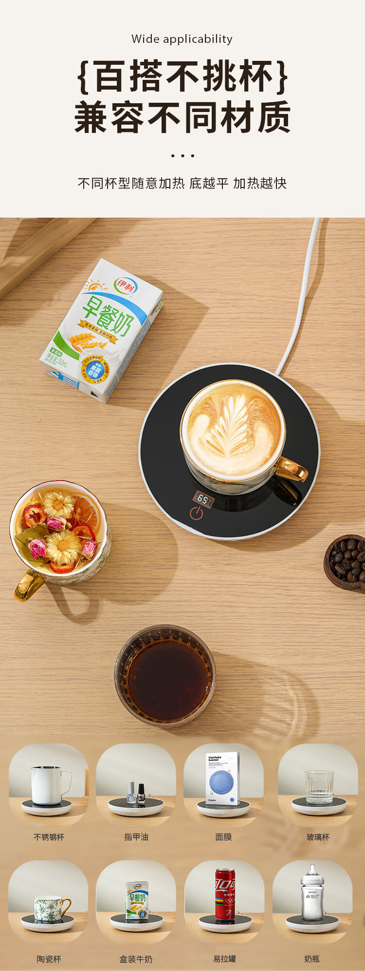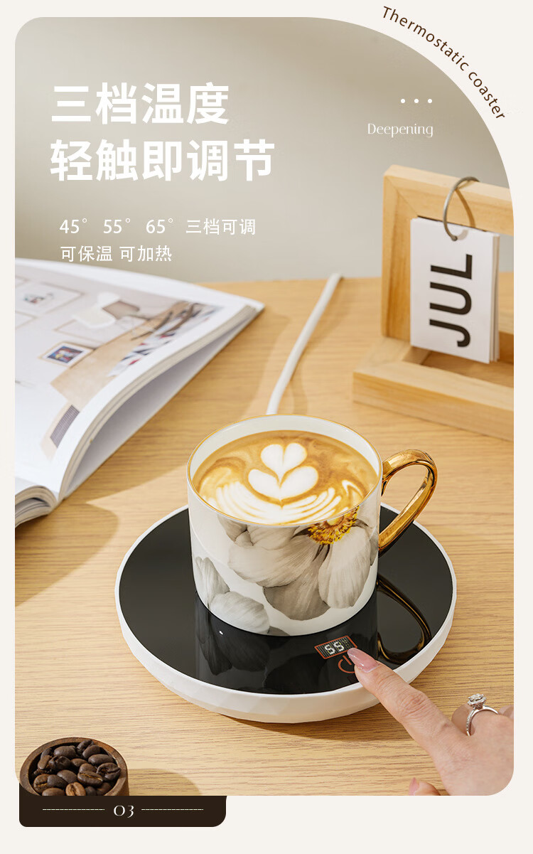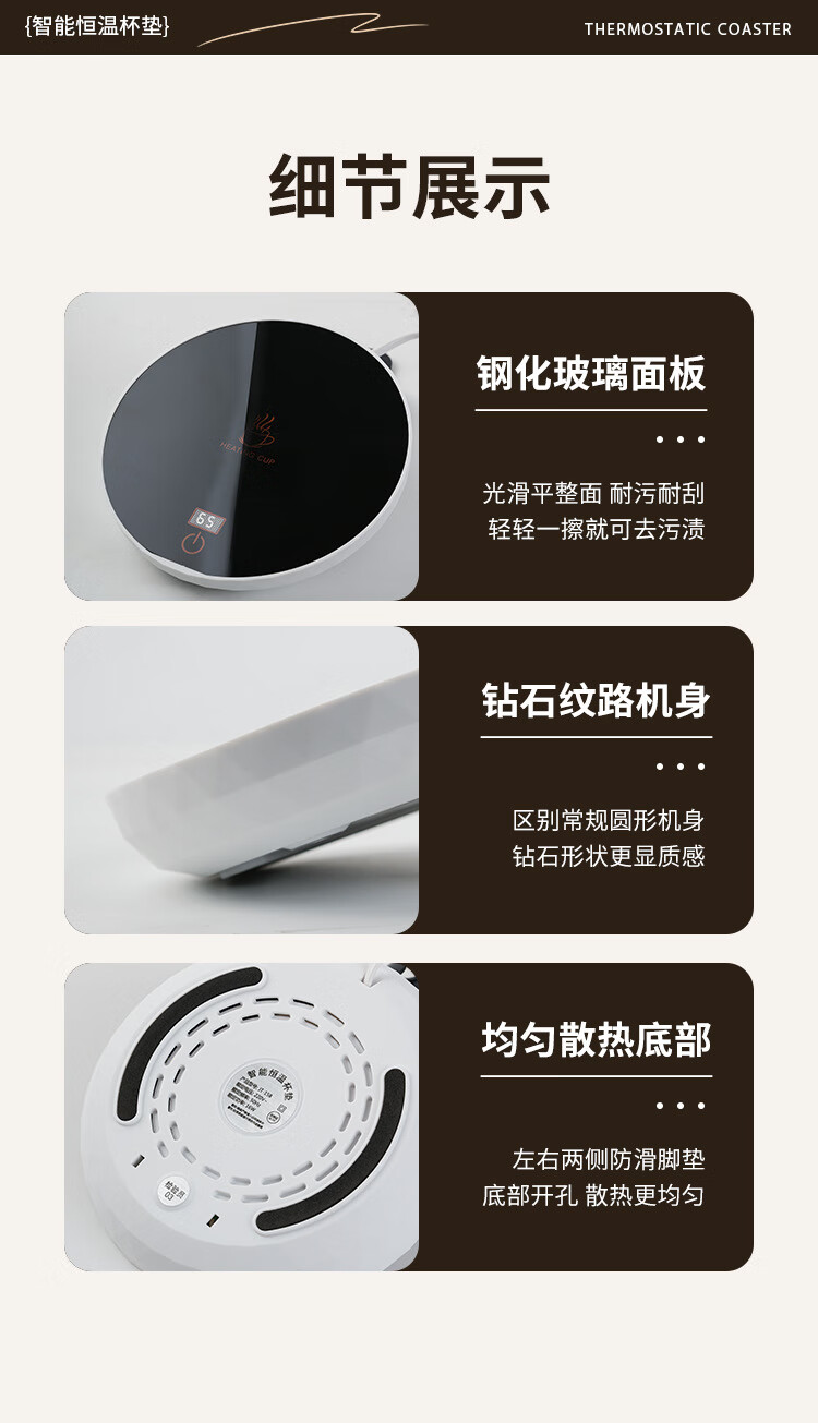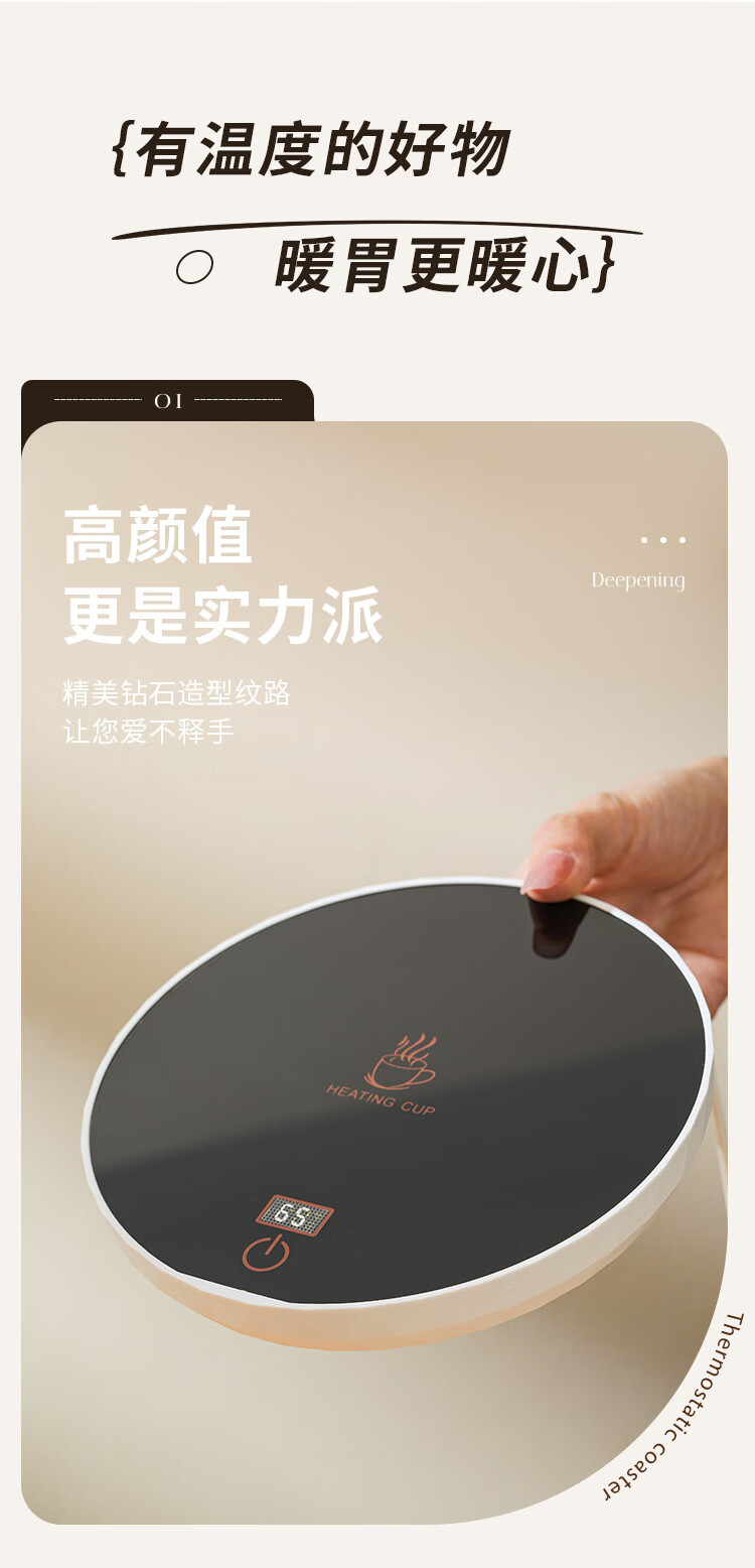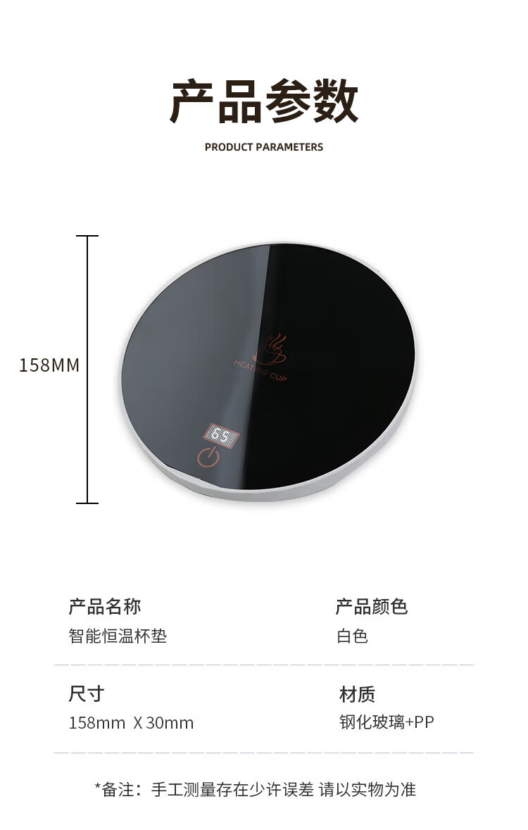 梦庭保温杯垫65度数显恒温杯垫智能杯垫三档控温杯垫触摸开关