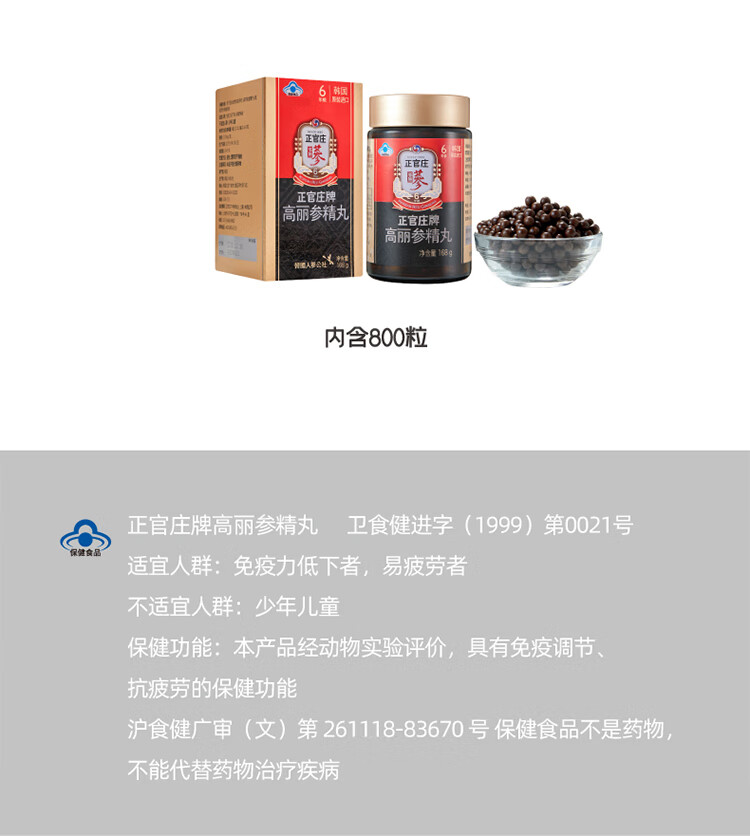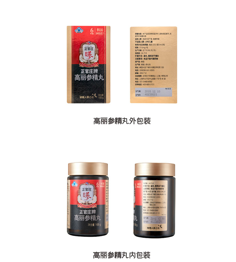 正官庄人参高丽参精丸168g保健食品免疫调节原装进口