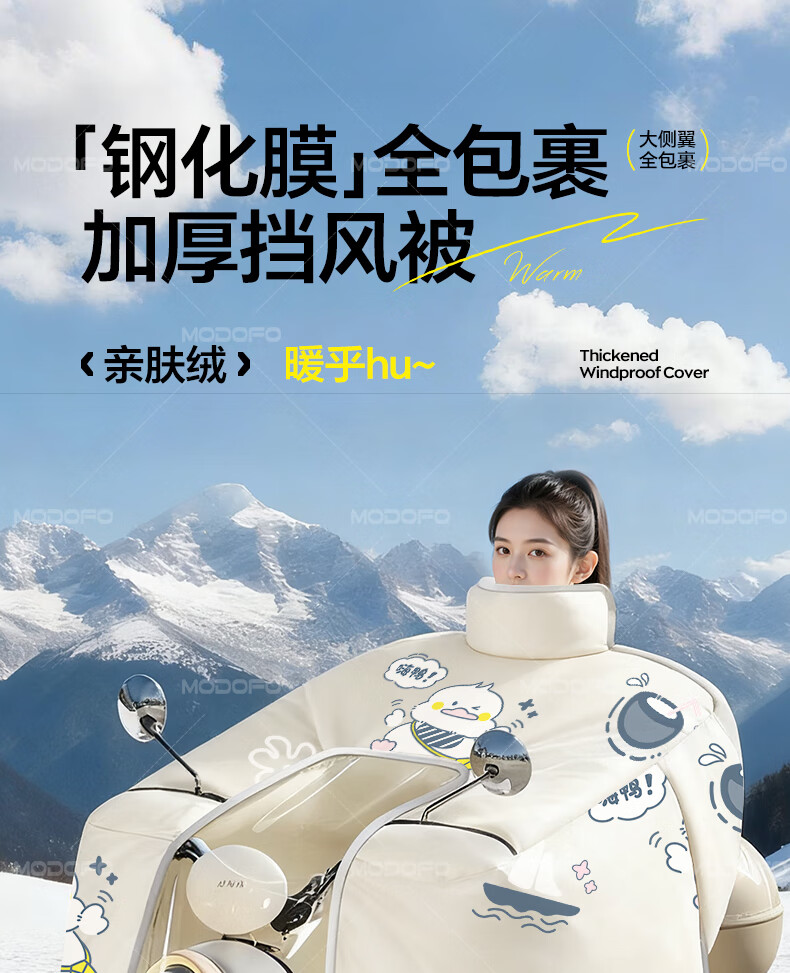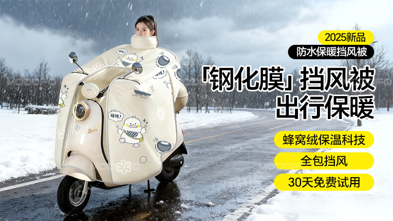 梦多福【暴雨钢化膜】电动车挡风被冬季加厚加绒电瓶车防风新款全包保暖