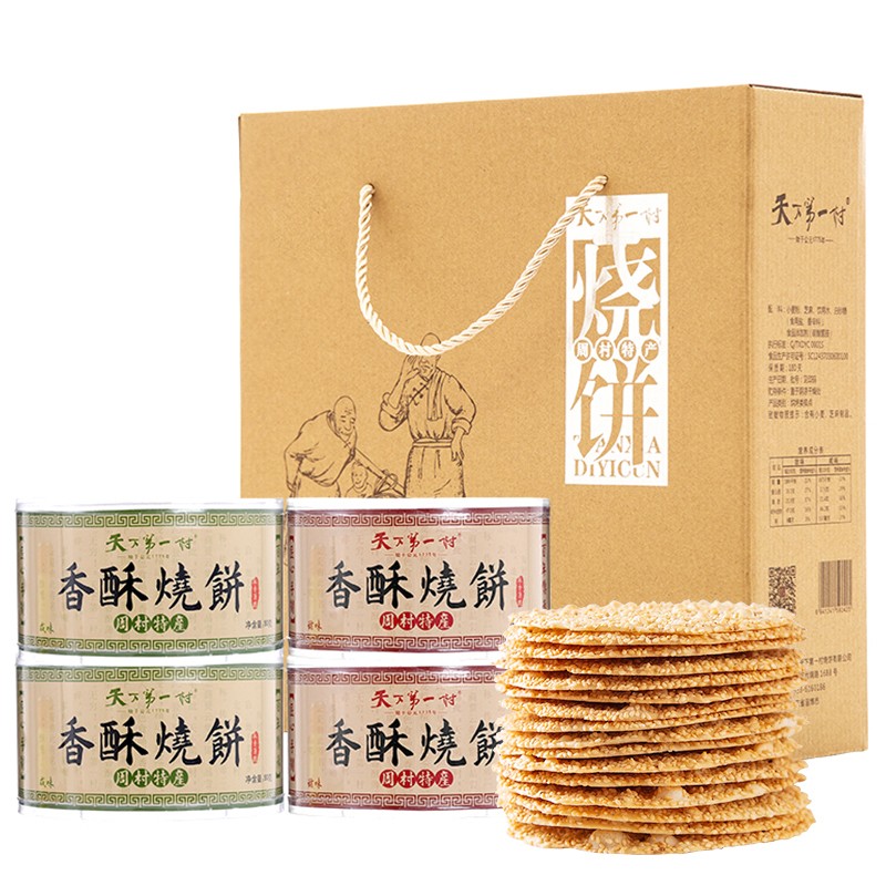 天下第一村周村香酥烧饼年货礼盒90gx4盒甜咸香酥芝麻饼山东特产孕妇零食 2咸2甜
