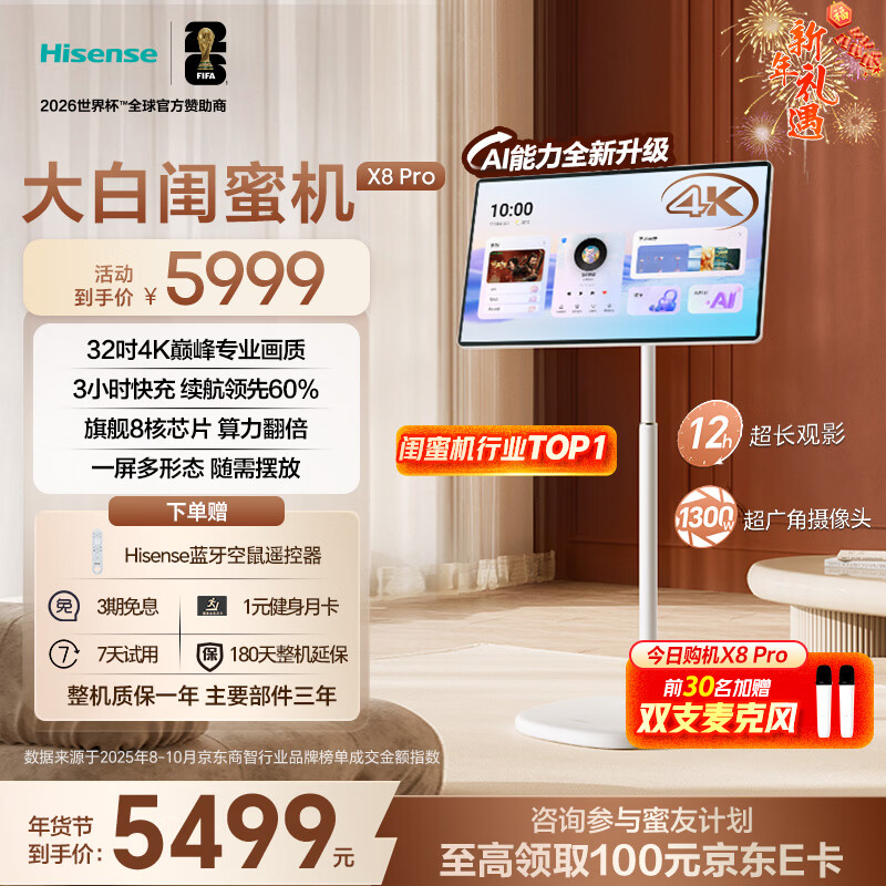 海信大白闺蜜机X8 Pro 32英寸4K 3h快充 12h长续航大平板 AI全新升级 一屏多形态 女生礼物