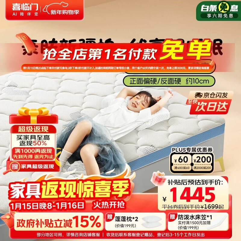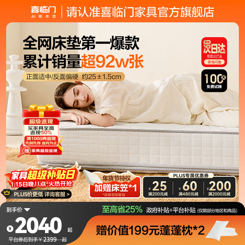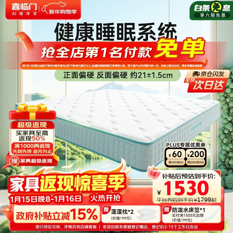 喜临门光年护脊3.0 抑菌防螨床垫舒脊黄麻独袋弹簧偏硬床垫1.8x2米 偏硬