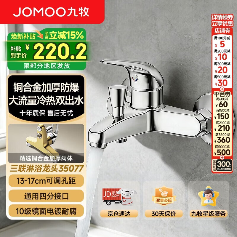 九牧混水阀铜合金加厚防爆淋浴龙头三联热水器混水阀浴缸水龙头35077