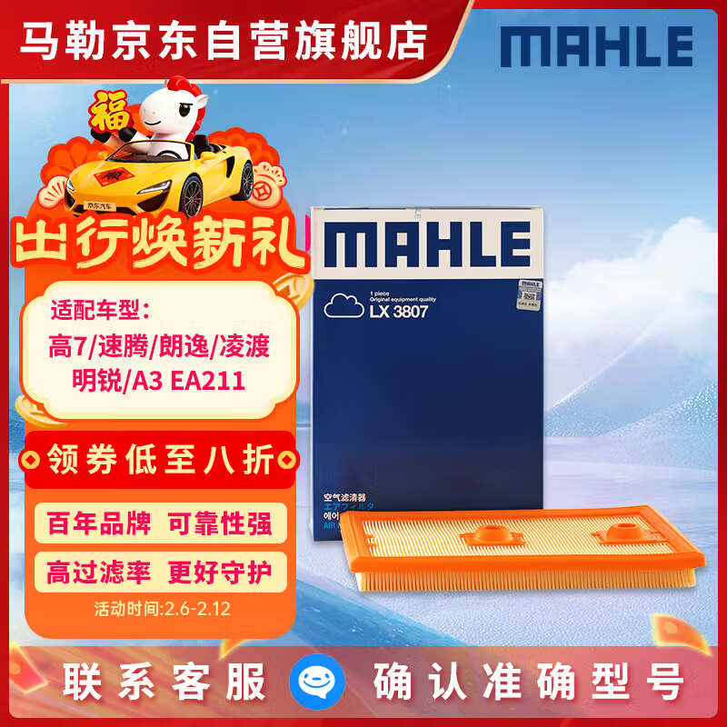 马勒空气滤芯滤清器LX3807高7速腾朗逸凌渡明锐A3速派 EA211 1.2/1.4T