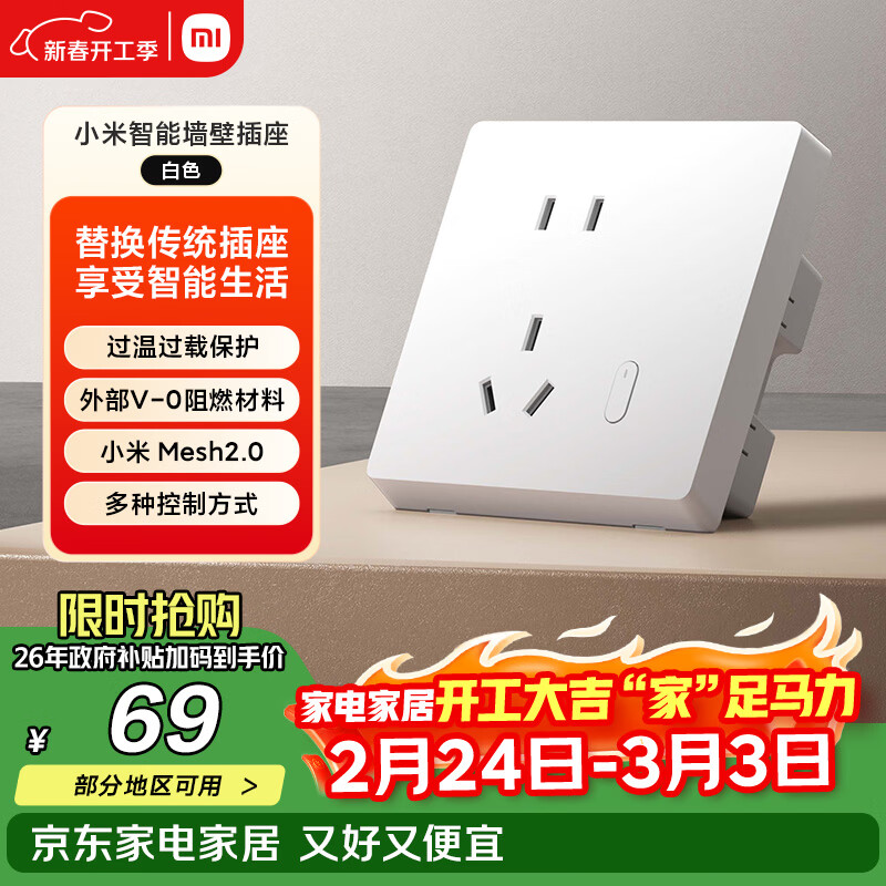 小米智能墙壁插座语音控制电量统计手机远程控制【需搭配网关】