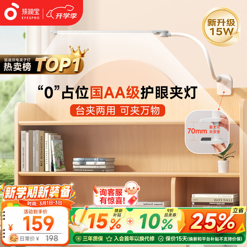 孩视宝夹式护眼台灯夹子灯床头阅读灯学生学习宿舍可调节多场景VL821A-D
