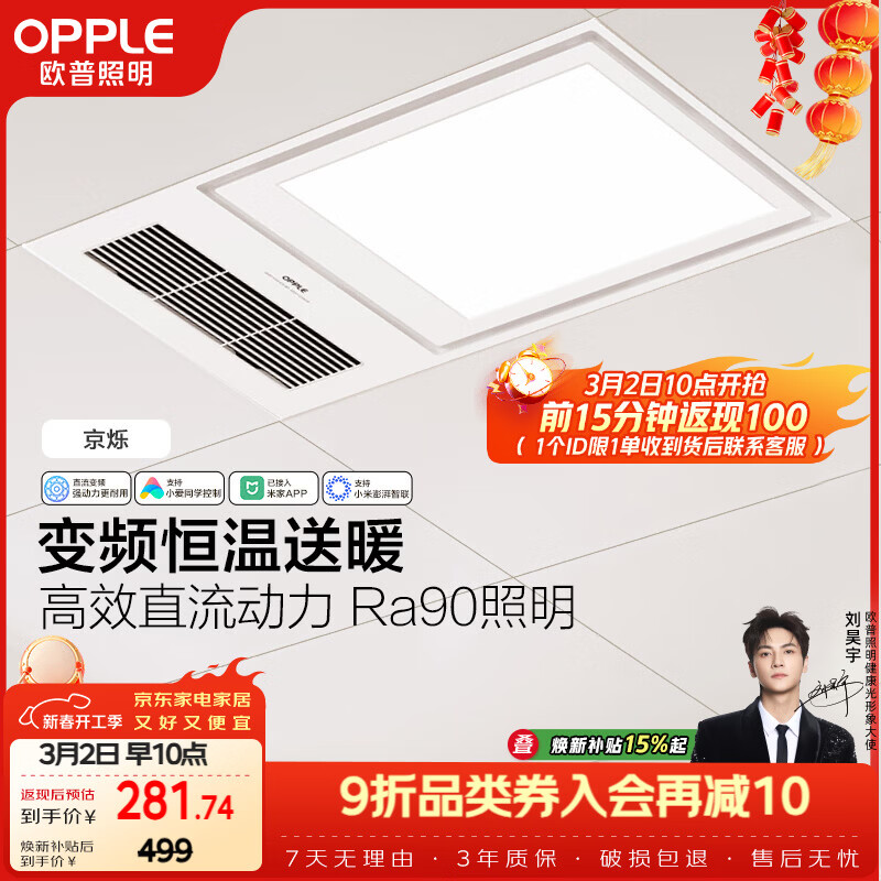 欧普照明(OPPLE)智能浴霸变频恒温系列浴室卫生间暖风照明排气一体集成 京烁