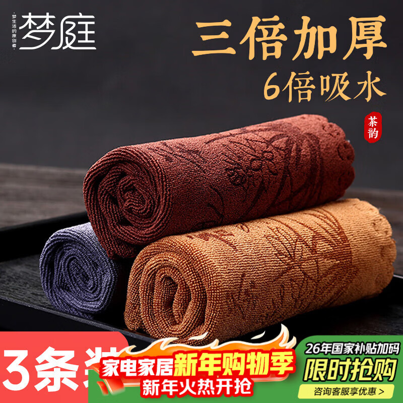 梦庭加厚茶巾茶布功夫茶具配件茶桌抹布茶垫茶台布茶桌布吸水3条装