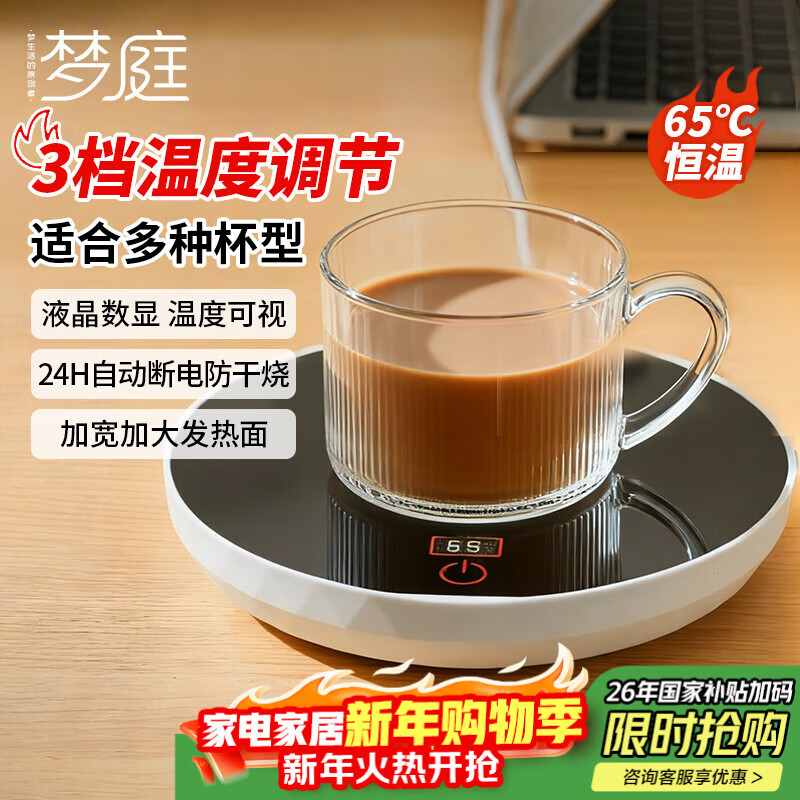 梦庭保温杯垫65度数显恒温杯垫智能杯垫三档控温杯垫触摸开关